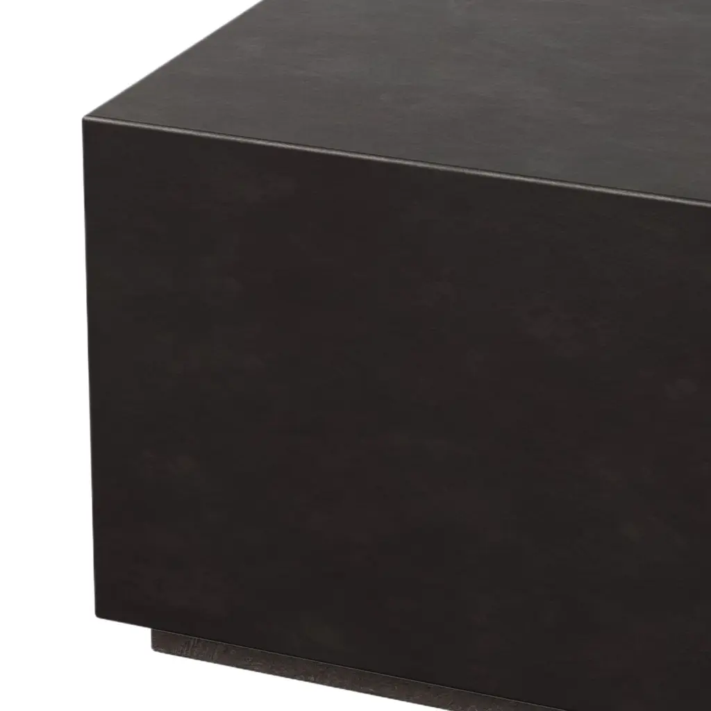 The Bloc Rectangular Coffee Table adds effortless style and function to any space. This clean piece can be complemented with bold colors or paired with other pieces to complete the industrial look. Each table is artisan crafted and exhibits a unique patina, making it a distinctive addition to your decor. Suitable for both indoor and covered outdoor spaces.