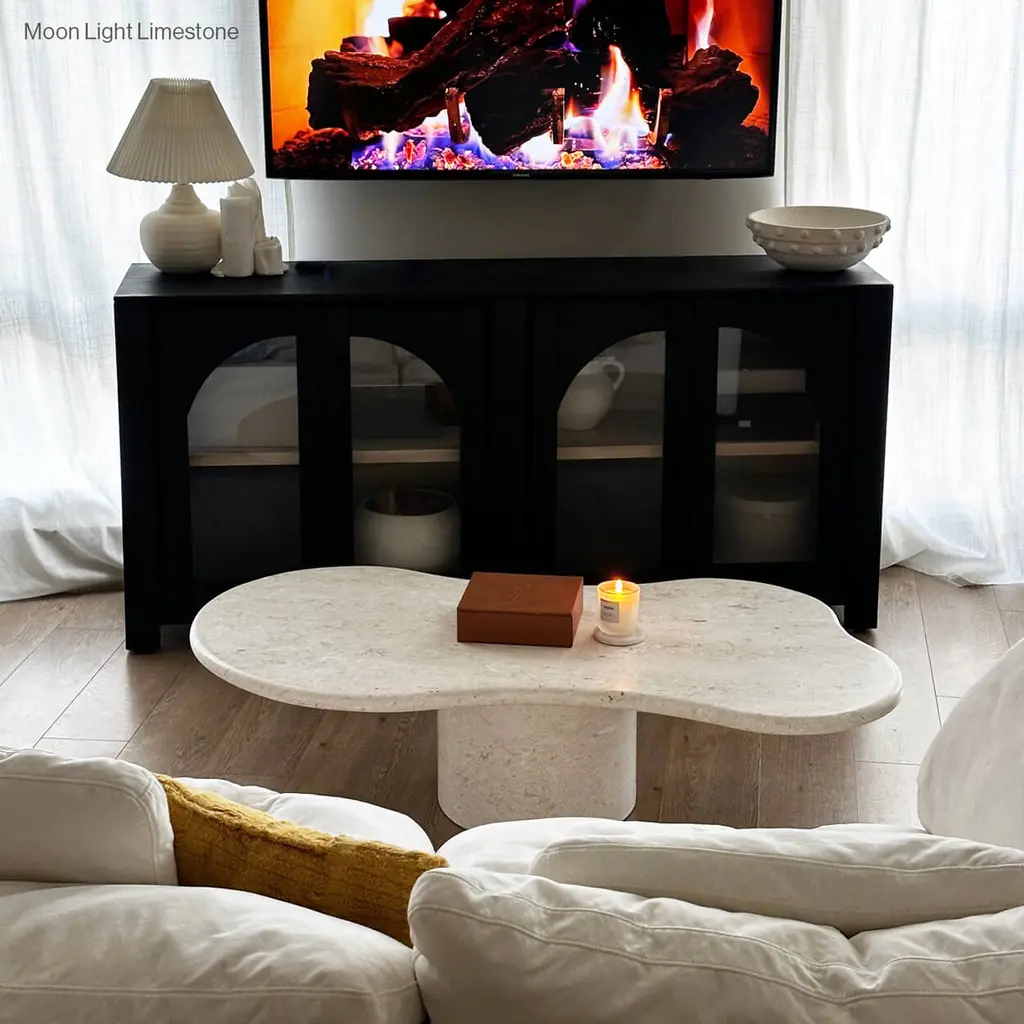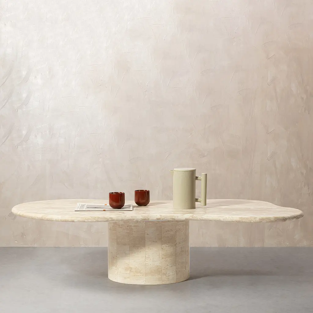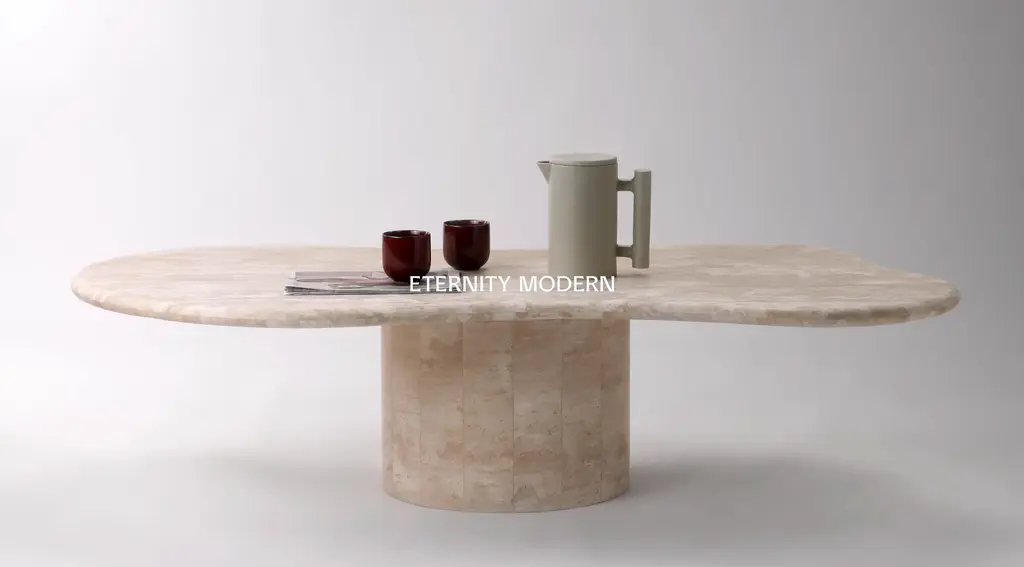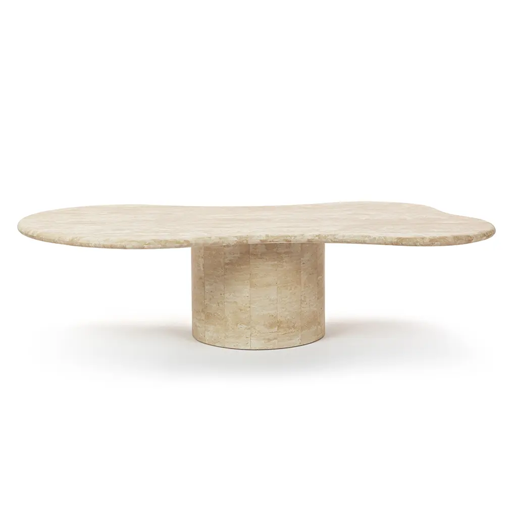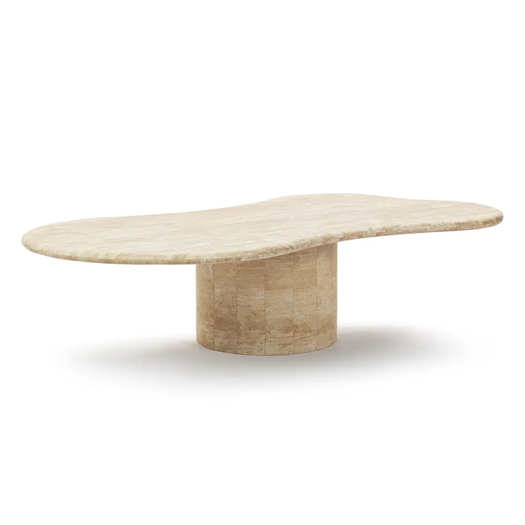 Elyse Freeform Stone Coffee Table With Cylinder Pedestal Base