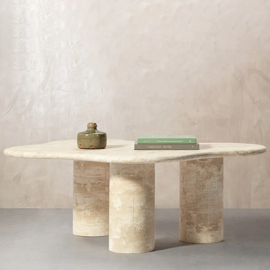 Elyse Freeform Stone Coffee Table With Tri Cylinder Base