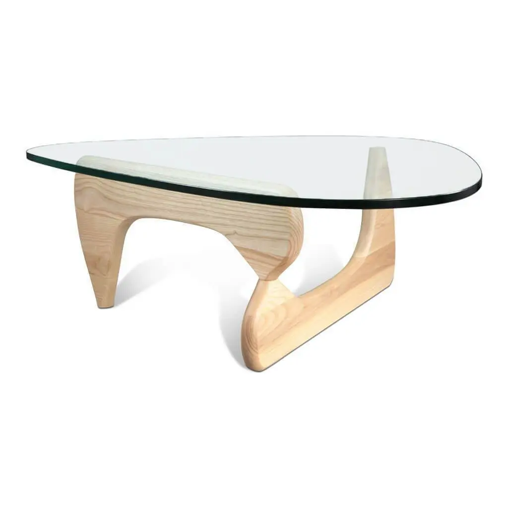The perfect balance literally between art and furniture. Sculptor Isamu Noguchi created his distinctive table by joining a curved, wood base with a freeform glass top. The ethereal result does not diminish the practical design of a sturdy and durable table. This marriage of sculptural form and everyday function has made the EM coffee table an understated and beautiful element in homes and offices since its introduction in 1948.