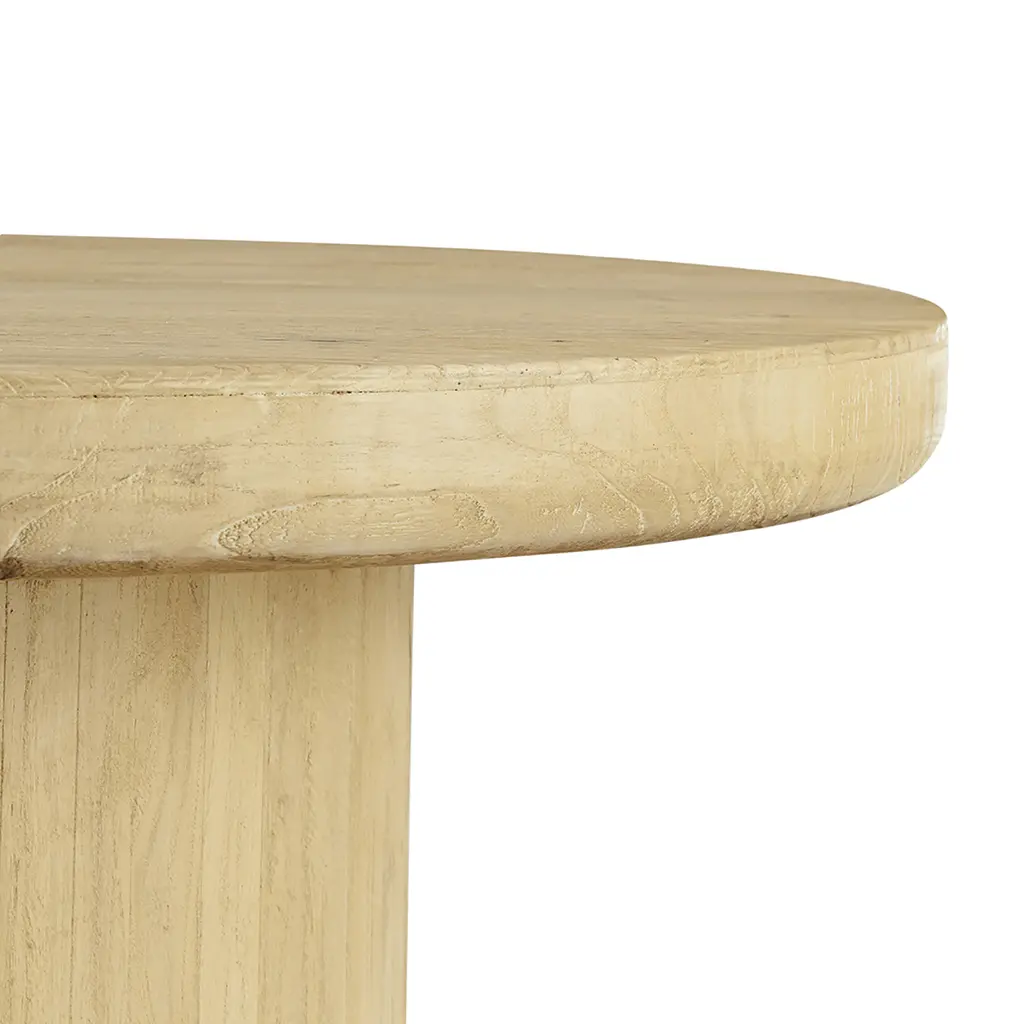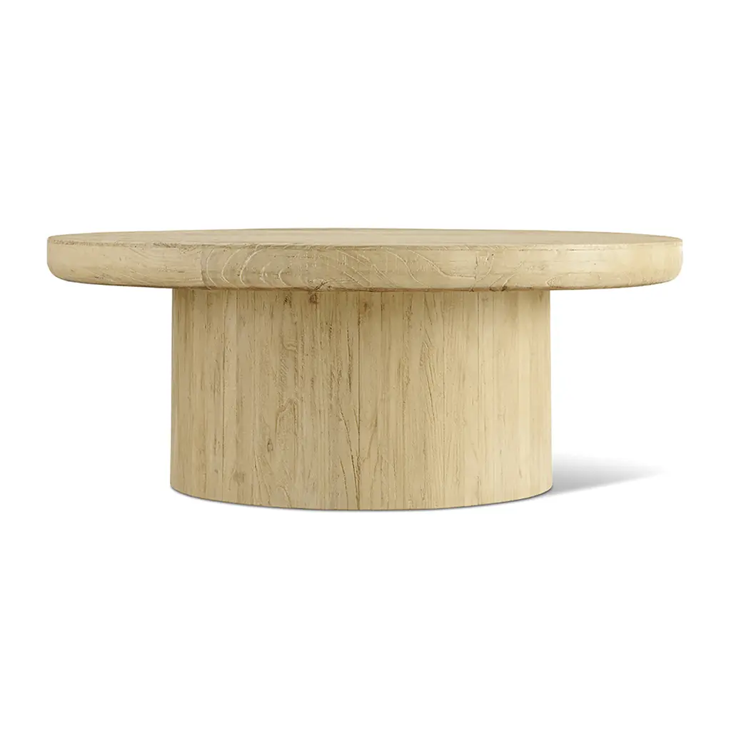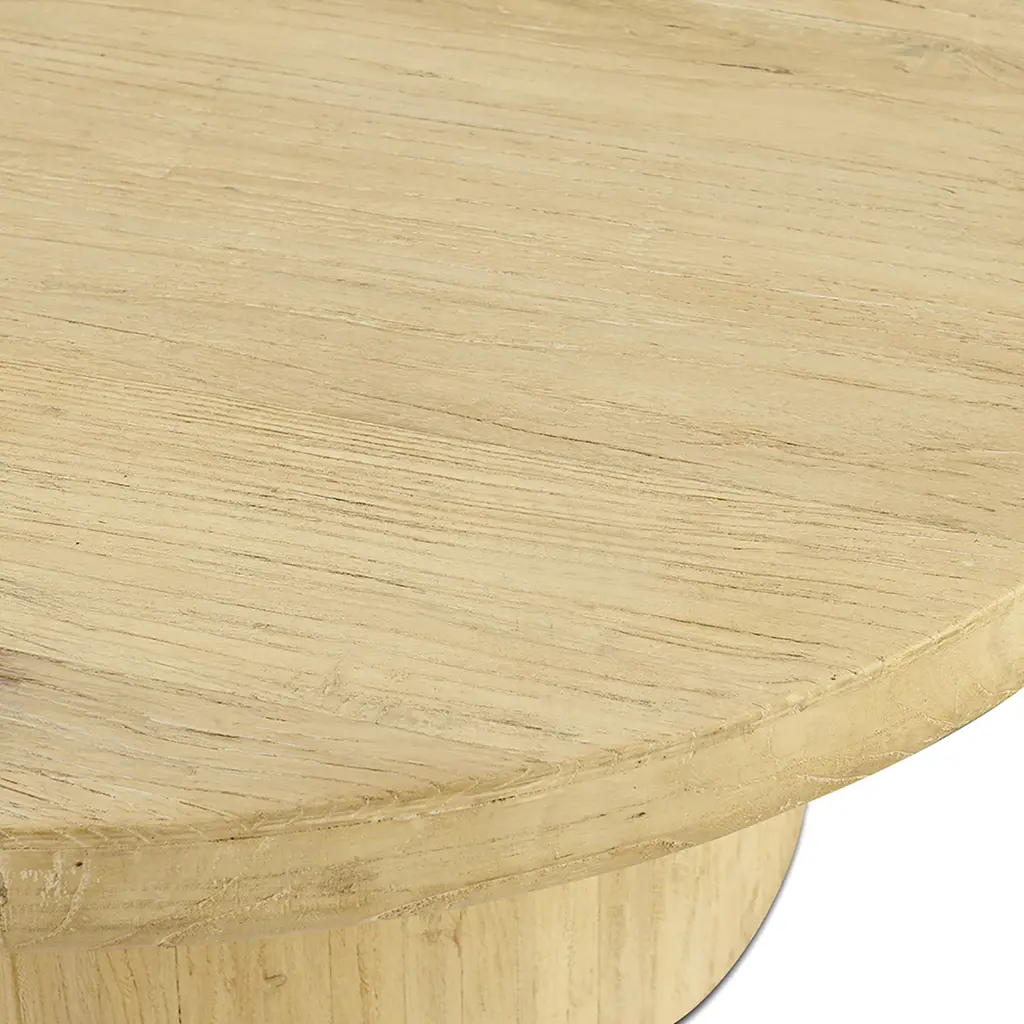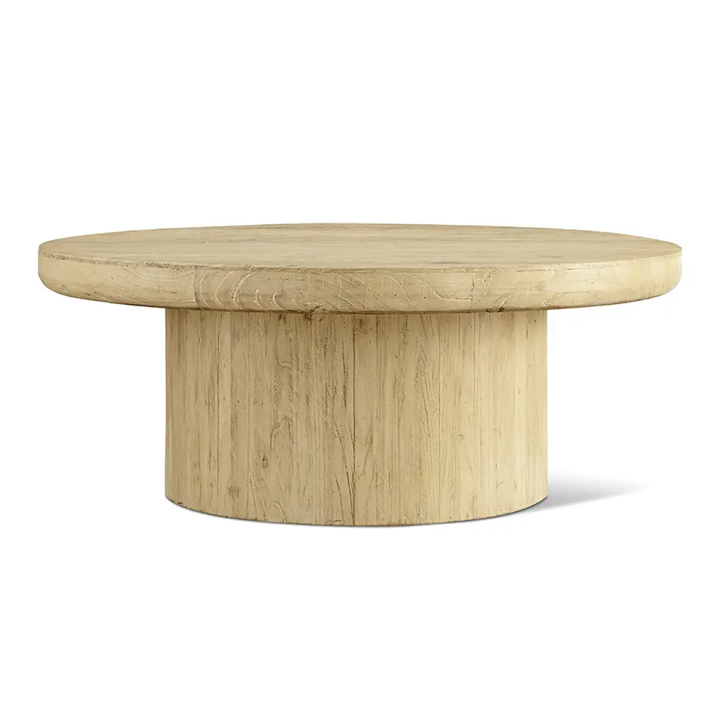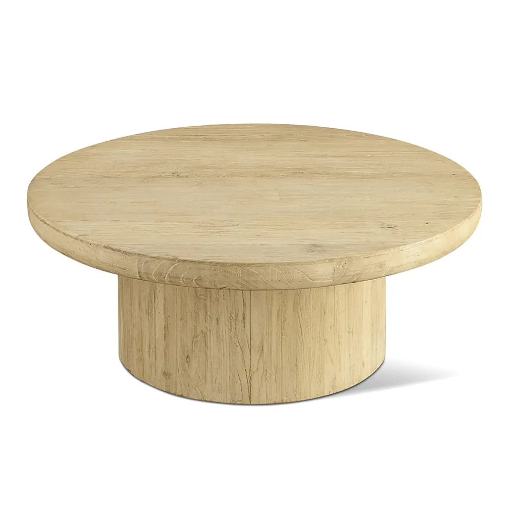 Em Wabi-Sabi Round Light Natural Reclaimed Wood Coffee Table With Round Pedestal Base