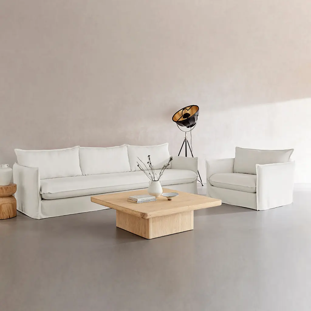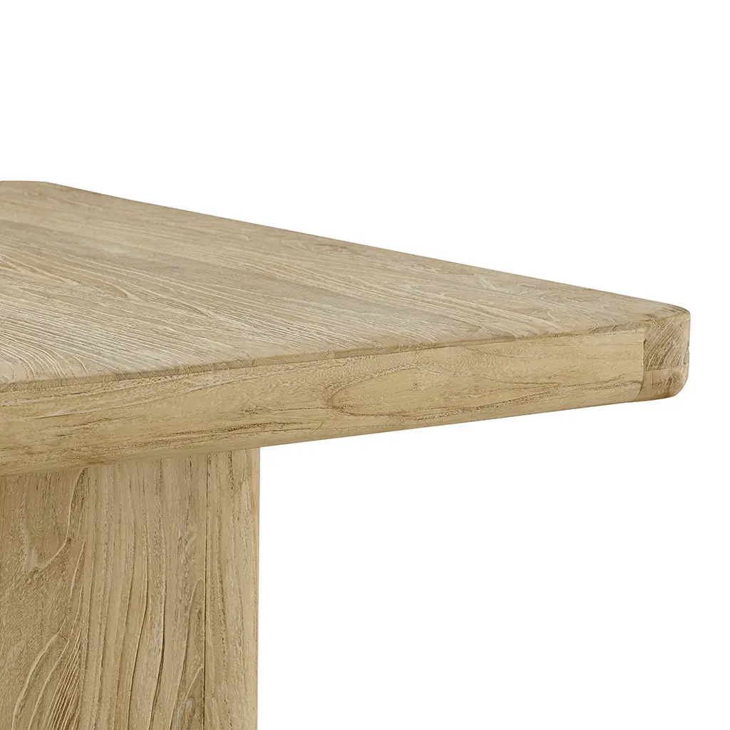 The EM Wabisabi Square Light Natural Reclaimed Wood Coffee Table, boasting its square pedestal base, embodies a sense of balance and encapsulates the essence of the wabi-sabi style. The marriage of its square forms and natural material evokes feelings of harmonious simplicity and adds a touch of organic modernity to any living space. Every table is handcrafted from wood, and to preserve its natural character and inherent charm, it may occasionally be adorned with occasional knots, imperfections, or fissures.