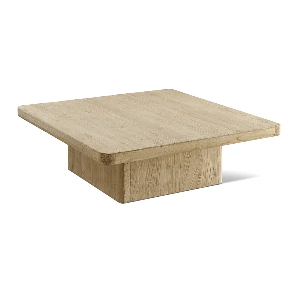 Em Wabisabi Square Light Natural Reclaimed Wood Coffee Table With Square Pedestal Base