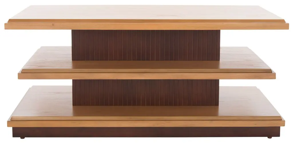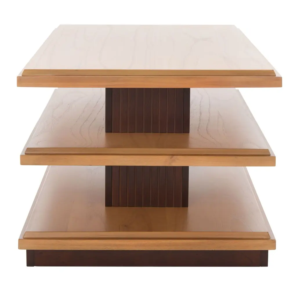 Bring a dose of charm and convenience to your home with our Emara Coffee Table. This warm and lively coffee table plays around with wood finishes to make an elegant and charming statement. It comes to life with rich and lively wood grains. The eye-catching charm of our coffee table is accentuated with a ribbed stand. Our three-tiered coffee table delivers high functionality with two open shelves, keeping your essentials within easy reach.