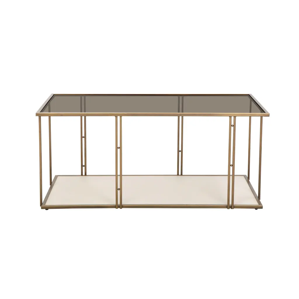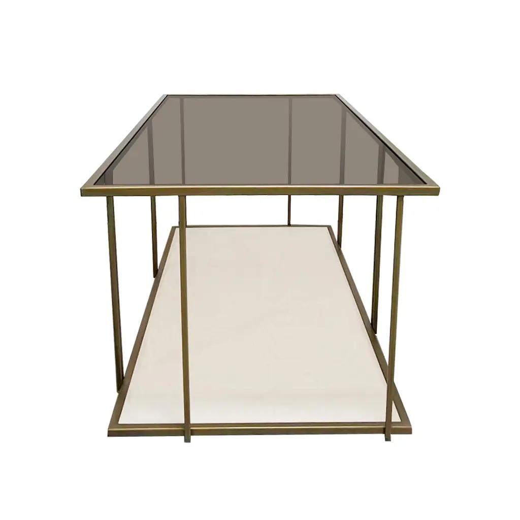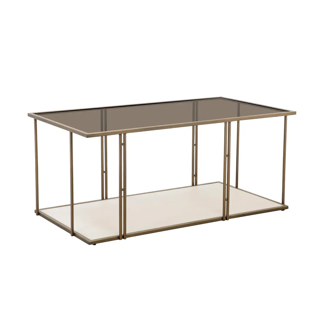 New from our Inspire Me! Home Decor x TOV collection, the Emma Tables are immediate fan-faves. These transitional style coffee and side tables dazzle with smokey glass and trending warm wood tones. Our signature brass iron base lends that element of EXTRA.