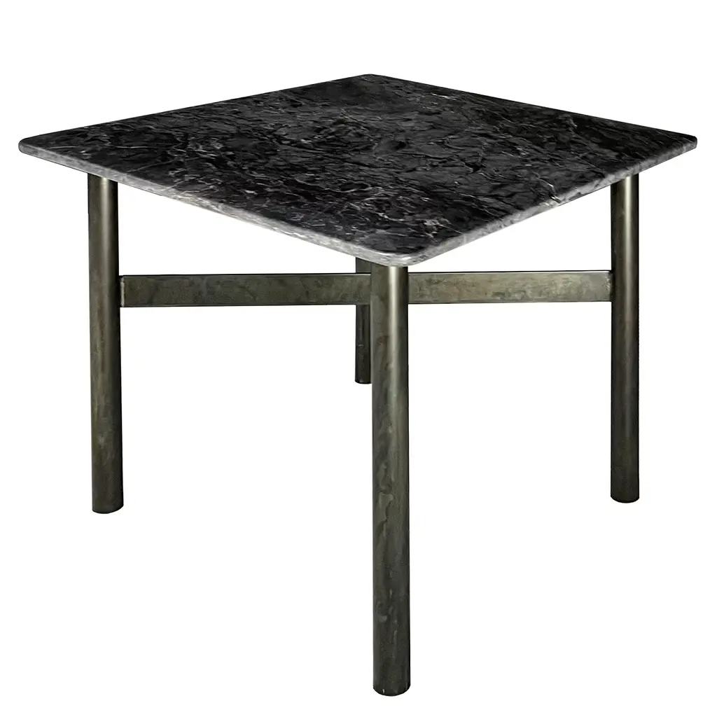 Drawing inspiration from industrial style, this timeless coffee table will effortlessly fit in a modern interior. The prized Dark River marble top is supported by an iron base made using a special hand-finishing process achieving its cloudy steel finish which is the leitmotif of the Eneolitica Collection.