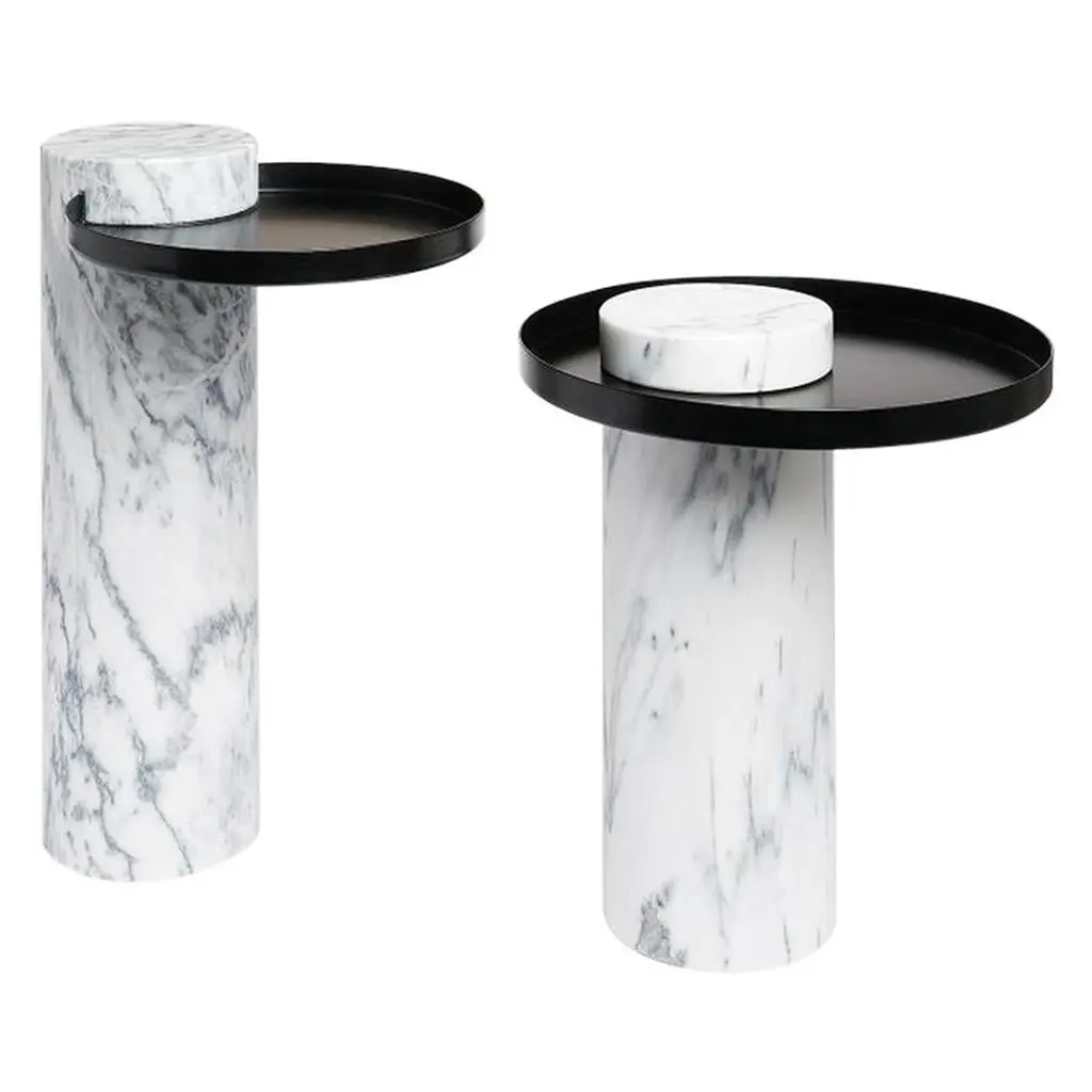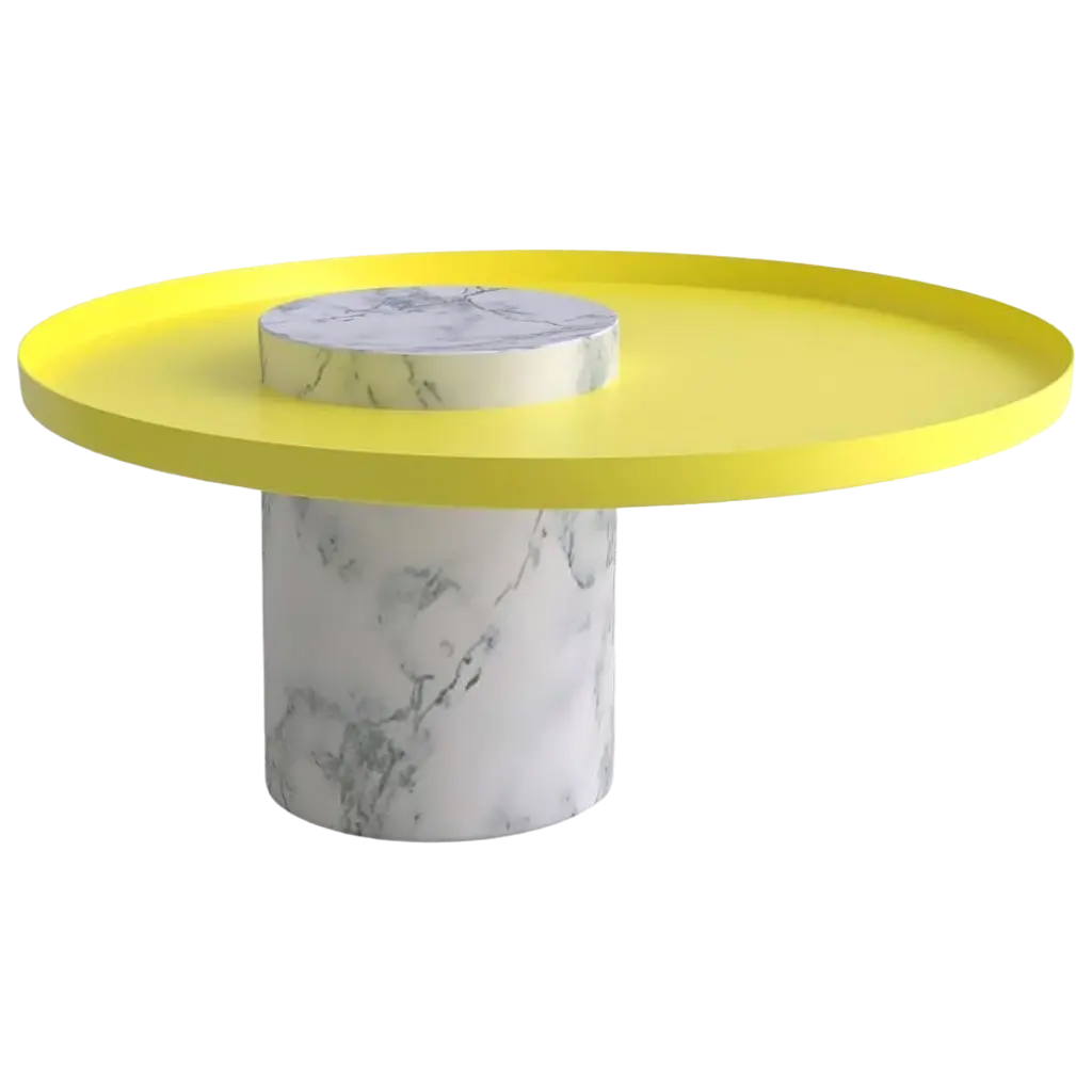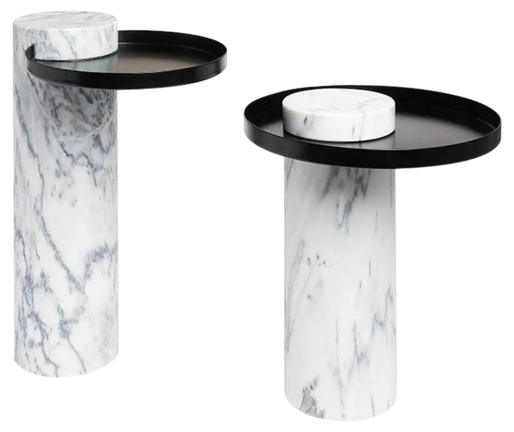 Marble contemporary coffee table - Sebastian HerknerThe Salute table exists in 3 sizes, 3 different marbles for the column and 4 different finishes for the tray for a virtually endless number of configurations. In addition, Salute can be made bespoke with special colors materials and stones.High salute:Height 22.4 inchesDiameter 16.1 inchesWeight: 95 lbsMedium saluteHeight 16.53 inchesDiameter 7.1 inchesTotal diameter 15.75 inchesWeight: 75 lbsLow saluteHeight 13 inchesDiameter 27.5 inchesWeight: 106 lbs.Salute is a family of tables mixing marble and metal for a high visual impact. As an occasional table, Salute is the perfect companion to your iconic armchair or next to a comfy sofa, with its clean lines and yet strong personality and impact. As a combination of tables, it is a sculptural coffee table that you can customize and adapt both in dimensions and colors.Salute is a family of Gueridon tables.Each element can be used alone or combined together to play with different heights and formats as well as combinations of materials. The strong presence of the marble columnis lightened by the suspended shape of the metal tray.Sebastian Herkner is the rising star of German design. He collaborates extensively with the best Italian and German brands (Moroso, ClassiCon,..) with product that share an tasteful and rigorous simplicity, with a focus on materials and textures.