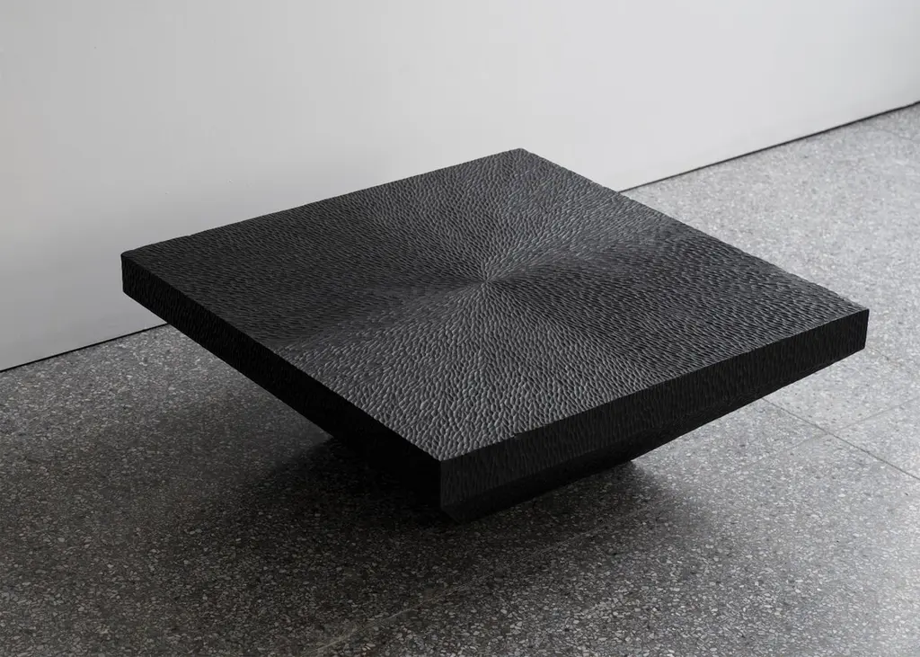 Epang 05 coffee table by Sing ChanDimensions: W 90 x D 90 x H 25 cmMaterials: Manual sculpture, teak, black paint, waxing.Sing Chan ( Chinese: 陈星宇/Xingyu Chen) , the founder of SINGCHAN DESIGN, was born in 1990, and graduated from the Department of Industrial Design in Guangzhou University in 2013. He served as the Design Director for Bentu Design in 2016.Founded his own design studio in 2020, Sing specializes in discovering new revelations from different civilizations and eras, reconstructing them through design methods, and shaping new objects that link the past and the present.Panyu, Guangzhou, China, where Sing grew up, is a small town with a rich history along the Pearl River. In the early years, thanks to the developed waterway transportation, the port of the town has a very close relationship with Hong Kong, the imported cultures, utensils, and values meet and fuse here.It was not until he had been in the design industry for more than ten years that he realized that his understanding of native culture was shallow. He is confused about this, and experience tells him that the truly valuable objects are not groundless and pieced together, but based on historical inspection and adaptation of the times. Sing hopes that his design can be like a story that is worth telling in a lyric way, affecting the present across time.