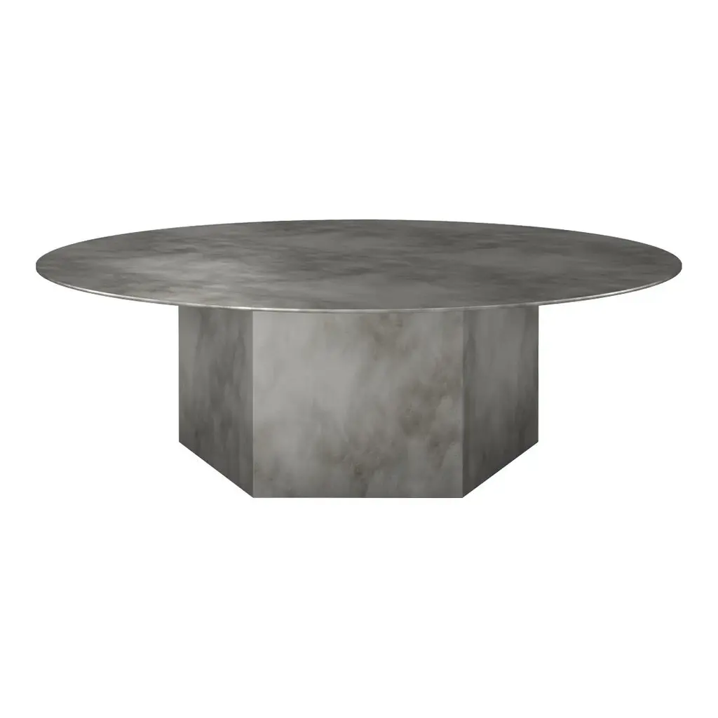 GamFratesi designed the Epic Coffee Table for GUBI as a sculptural piece of furniture inspired by Greek columns and Roman architecture and named after the epic poems of ancient times. Now available in lacquered steel, with a hand-finished surface that gives a vivid, living quality to the monolithic form, the Epic Table in steel is a celebration of the classical in an altogether modern expression. Inspired by historical examples of travertine constructions such as the Colosseum and Saint Peter's Basilica in Rome, and the 1970s revival of the material in Southern Europe, the table combines two simple geometric shapes, the circle and the hexagon, with references to the classical Greek column. Steel options in Midnight Black, Misty Gray or Earthy Red complement the tonal options of the Epic travertine range, allowing the two materials to be effortlessly combined. The varying heights and diameters within the Epic Table Series mean a single monochromatic table can stand alone or be combined in dynamic clusters of varying height, color and material. The Epic Coffee Table in steel is available in 60, 80 and 110 cm diameters.