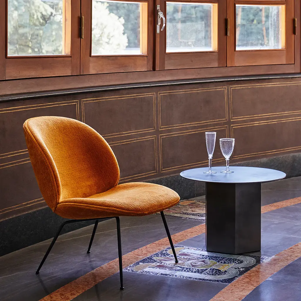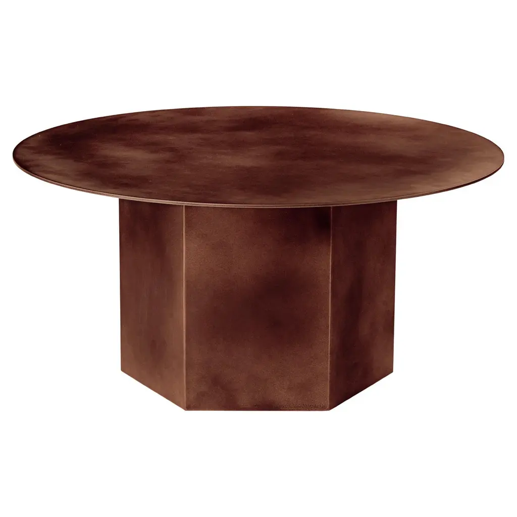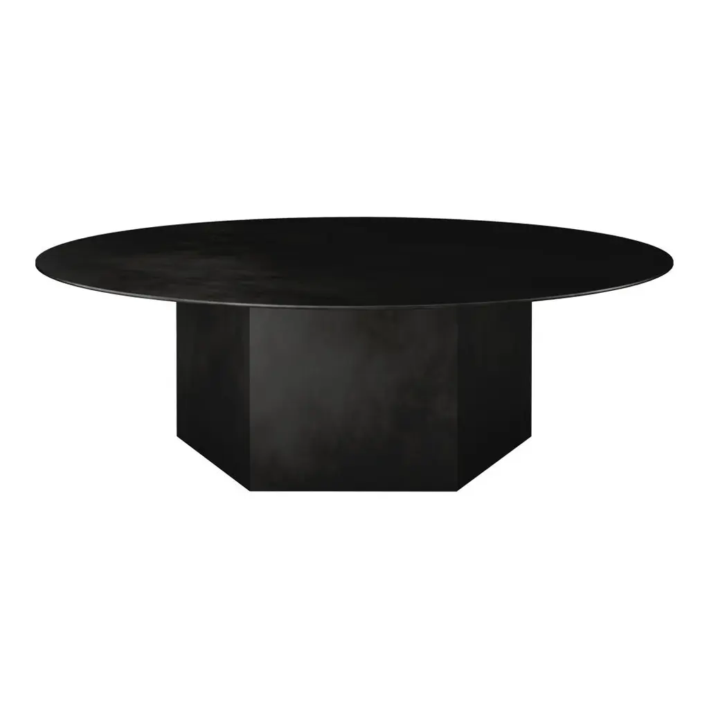 GamFratesi designed the Epic Coffee Table for GUBI as a sculptural piece of furniture inspired by Greek columns and Roman architecture and named after the epic poems of ancient times. Now available in lacquered steel, with a hand-finished surface that gives a vivid, living quality to the monolithic form, the Epic Table in steel is a celebration of the classical in an altogether modern expression. Inspired by historical examples of travertine constructions such as the Colosseum and Saint Peter's Basilica in Rome, and the 1970s revival of the material in Southern Europe, the table combines two simple geometric shapes, the circle and the hexagon, with references to the classical Greek column. Steel options in Midnight Black, Misty Gray or Earthy Red complement the tonal options of the Epic travertine range, allowing the two materials to be effortlessly combined. The varying heights and diameters within the Epic Table Series mean a single monochromatic table can stand alone or be combined in dynamic clusters of varying height, color and material. The Epic Coffee Table in steel is available in 60, 80 and 110 cm diameters.