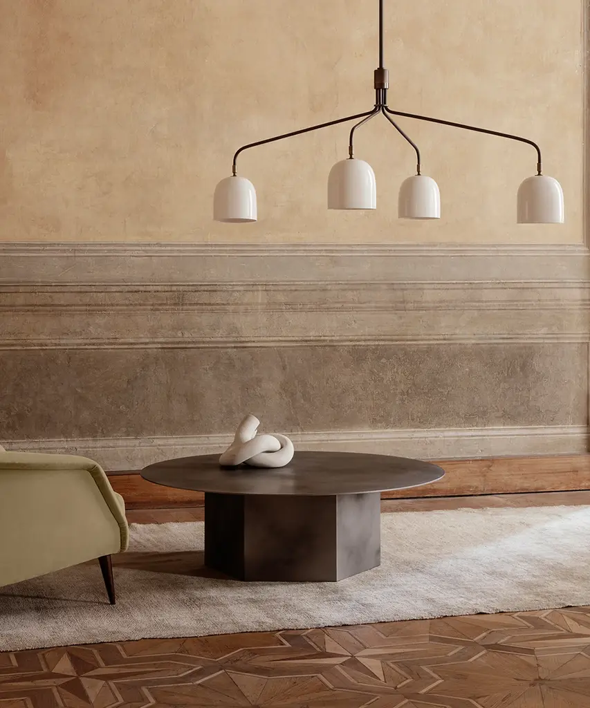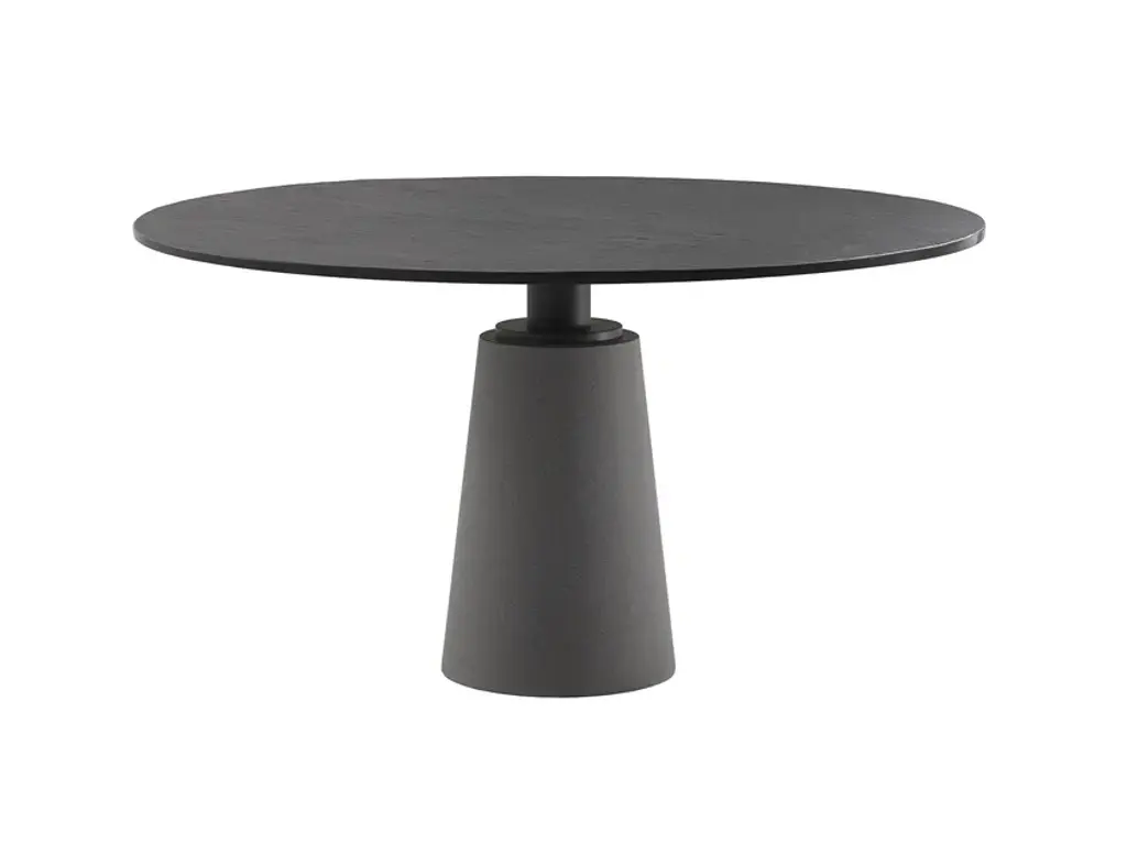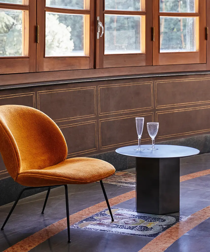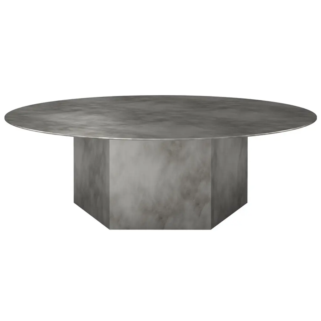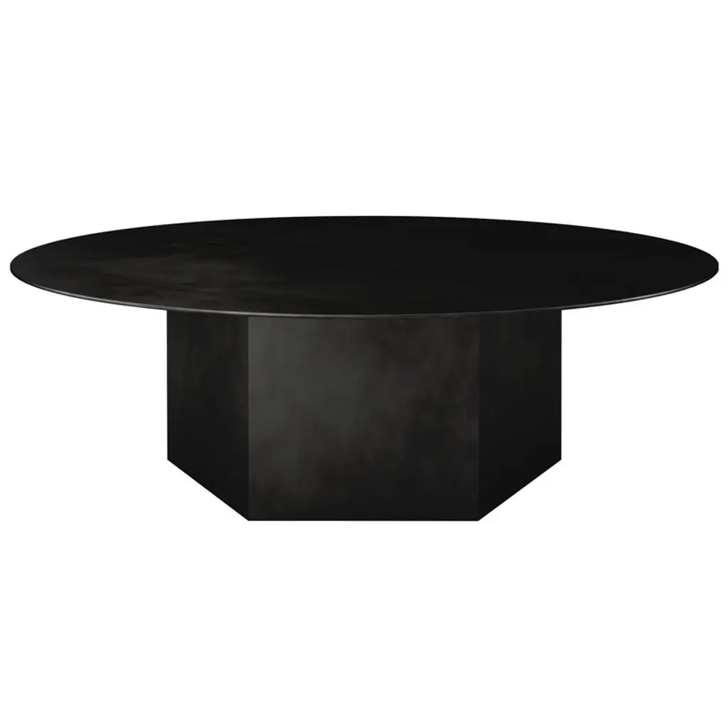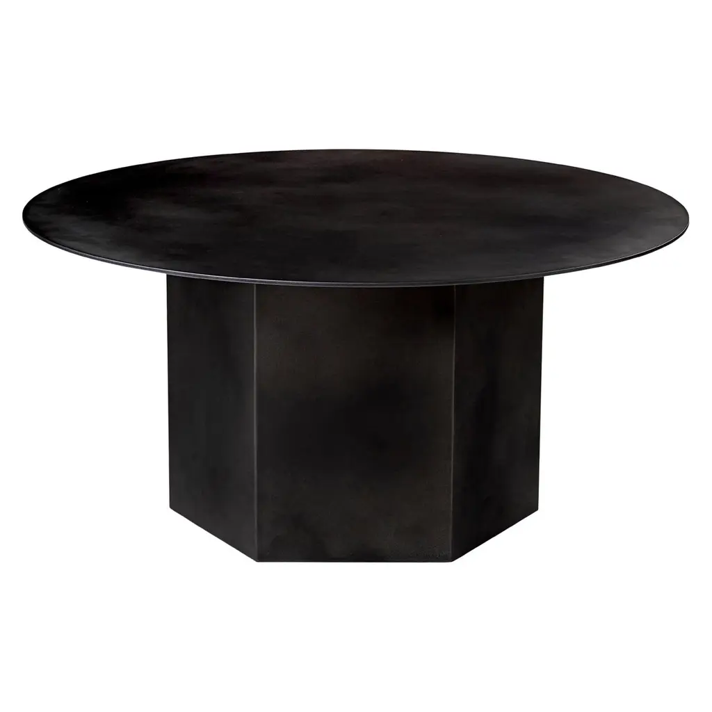 GamFratesi designed the Epic Coffee Table for GUBI as a sculptural piece of furniture inspired by Greek columns and Roman architecture and named after the epic poems of ancient times. Now available in lacquered steel, with a hand-finished surface that gives a vivid, living quality to the monolithic form, the Epic Table in steel is a celebration of the classical in an altogether modern expression. Inspired by historical examples of travertine constructions such as the Colosseum and Saint Peter's Basilica in Rome, and the 1970s revival of the material in Southern Europe, the table combines two simple geometric shapes, the circle, and the hexagon, with references to the classical Greek column. Steel options in Midnight Black, Misty Gray, or Earthy Red complement the tonal options of the Epic travertine range, allowing the two materials to be effortlessly combined. The varying heights and diameters within the Epic Table Series mean a single monochromatic table can stand alone or be combined in dynamic clusters of varying height, color, and material. The Epic Coffee Table in steel is available in 60, 80, and 110-cm diameters. Produced by Danish design publisher, Gubi.