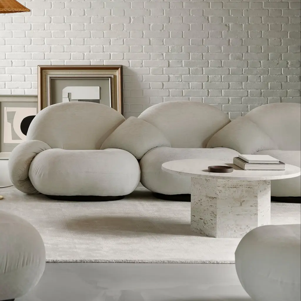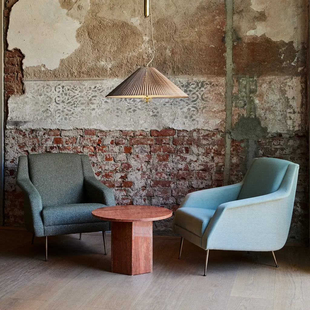 Inspired by monolithic architectural wonders like Greek temples and Rome’s Colosseum as well as a nod to ‘70s-style minimalism, Gubi offers a sculptural stone coffee table along classical lines with a circular tabletop and hexagonal base. Fashioned in Italy from luxurious travertine—each expanse with its unique veining and prized patina—the aptly named Epic series comes in 3 sizes and a duo of natural hues to create a focal point of desired intensity. Copenhagen studio GamFratesi, led by Danish architect Stine Gam and Italian counterpart Enrico Fratesi, envision the table’s 3 varying dimensions to allow Epic to stand alone or be combined in dynamic clusters of varying height and color.
