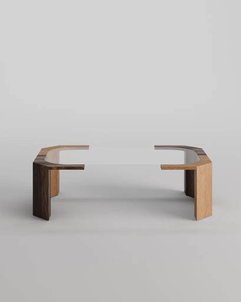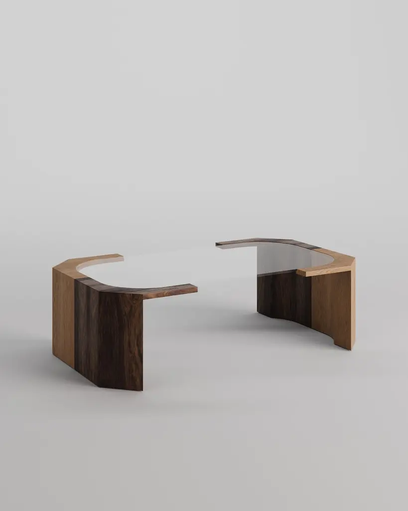 Era Coffee Table by Tuğçe GeyikDimensions: D 70 x W 120 x H 35 cm.Materials: Wood and tempered glass.Tuğçe Geyik is an architect and designer based in Istanbul. She studied at Yildiz Technical University, Department of Architecture. She began her career by participating in interior design projects and continued to cultivate her interest in this field. She finds great joy in working across different mediums and aesthetics with an approach that is united by the same principles such as furniture and lighting design, interior design, 3D architectural visualization, interior styling, and creative direction. She handles colors, textures, and forms with a holistic approach as if creating a composition from the parts of a collage. She also blends her archive of materials and techniques from the past with forms from the future to create contemporary objects that bring awareness to inanimate beings.