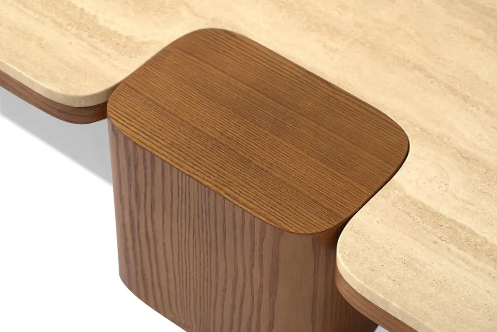 This exceptional rectangular coffee table will give a more contemporary and modern touch to your living room. The structure is entirely in massive ash wood and the marble top suites perfectly with a luxury environment giving a sophisticated effect. Note the detail of the legs that seem to come out from the marble top.Finishing cod. 31 Cognac (5 Gloss).The marble top is Travertino Oniciato Marble cat. B, but it is also possible to choose a laquered matte top.Other finishings and marbles are available.The item can be customized.