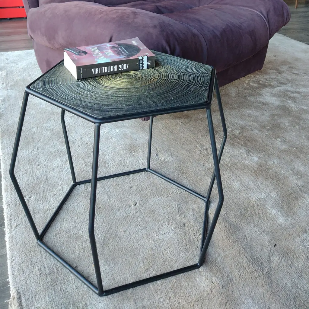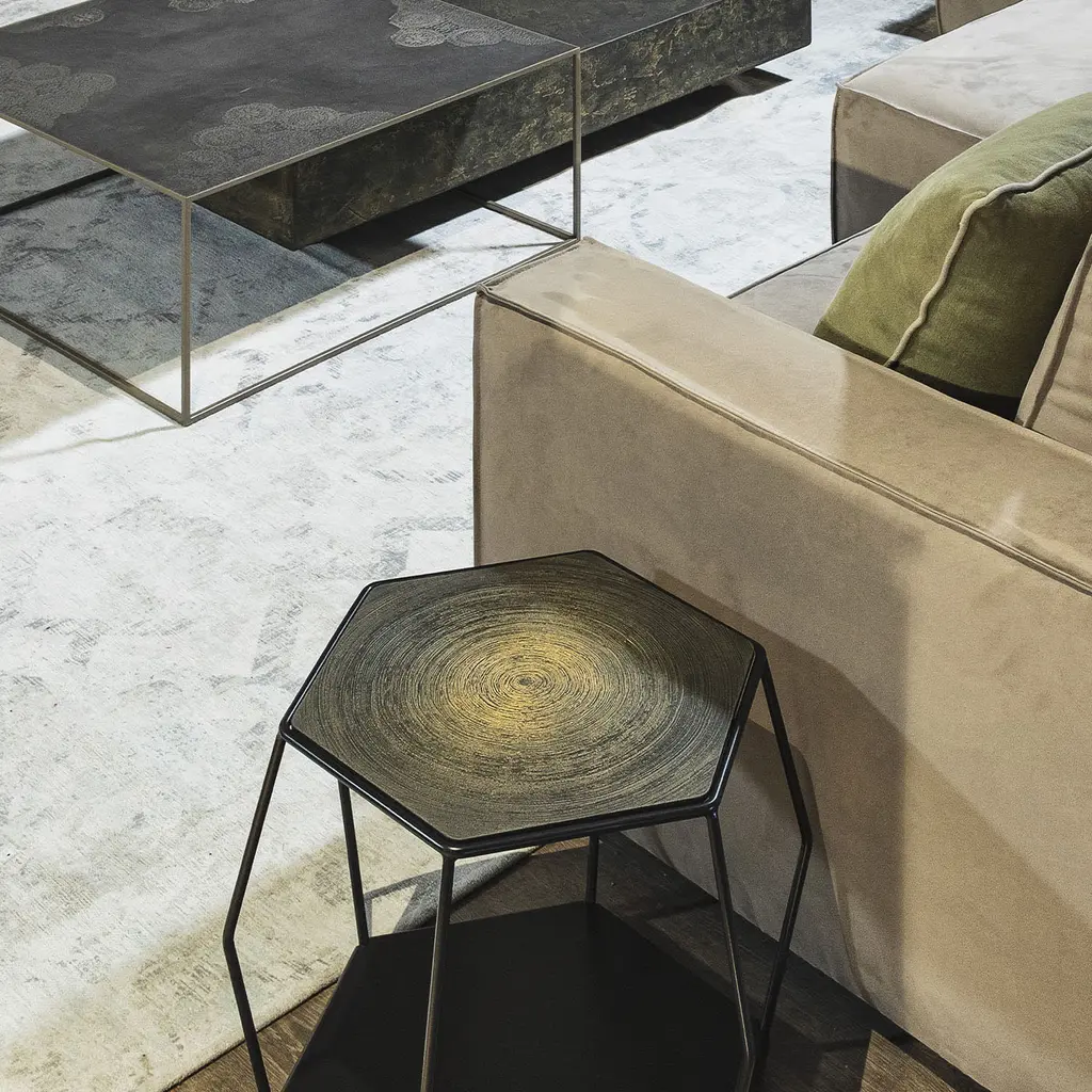 Esagono Hexagonal Coffee Table With Bronze Concentric Brushed Resin Top