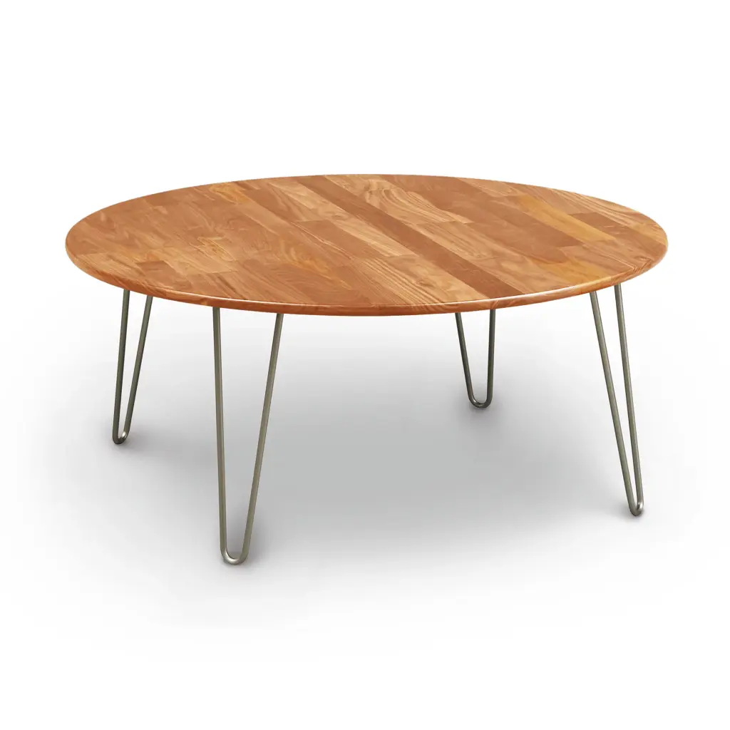 Mid-century modern design that embraces genuine American craftsmanship. Our Essentials Round Coffee Table blends natural walnut or cherry hardwood and industrial metal to create a retro style right out of the 1950s.