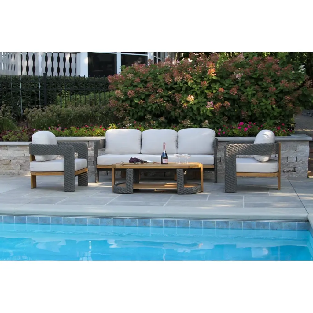 This coffee table is perfect for any outdoor modern space. This piece comes fully assembled and is crafted to endure the elements. Made with FSC teak hardwood and HDPE all-weather wicker ensuring your outdoor ensemble stays durable for years to come.