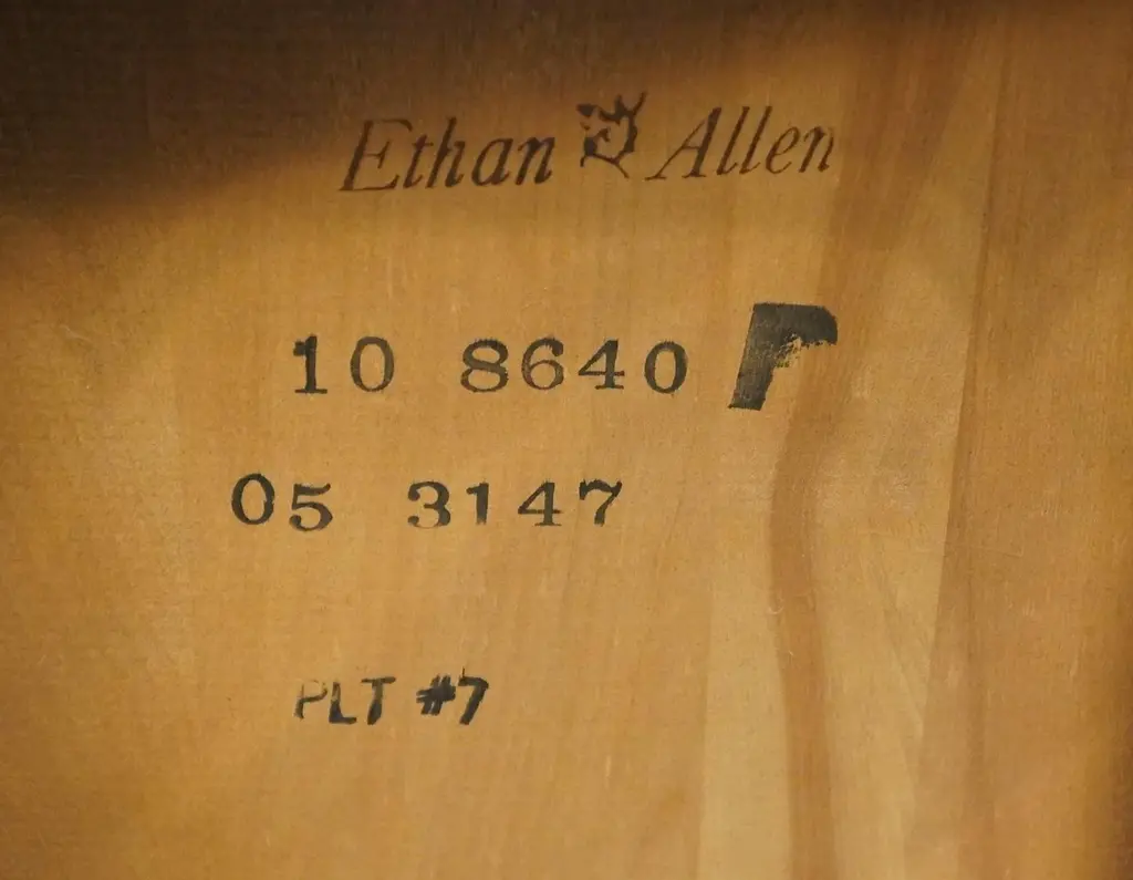 ETHAN ALLEN Heirloom Nutmeg Maple Colonial Early American 50" Accent Coffee Table 10-8640P Has the Formica top. 16" High 50" Wide 21" Deep We specialize in High End Used Furniture that we consider to be at least an 8 on a scale of 1 to 10 regarding condition, unless otherwise noted.