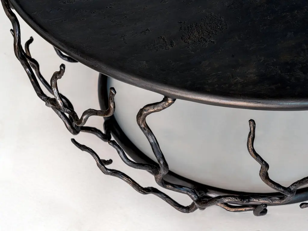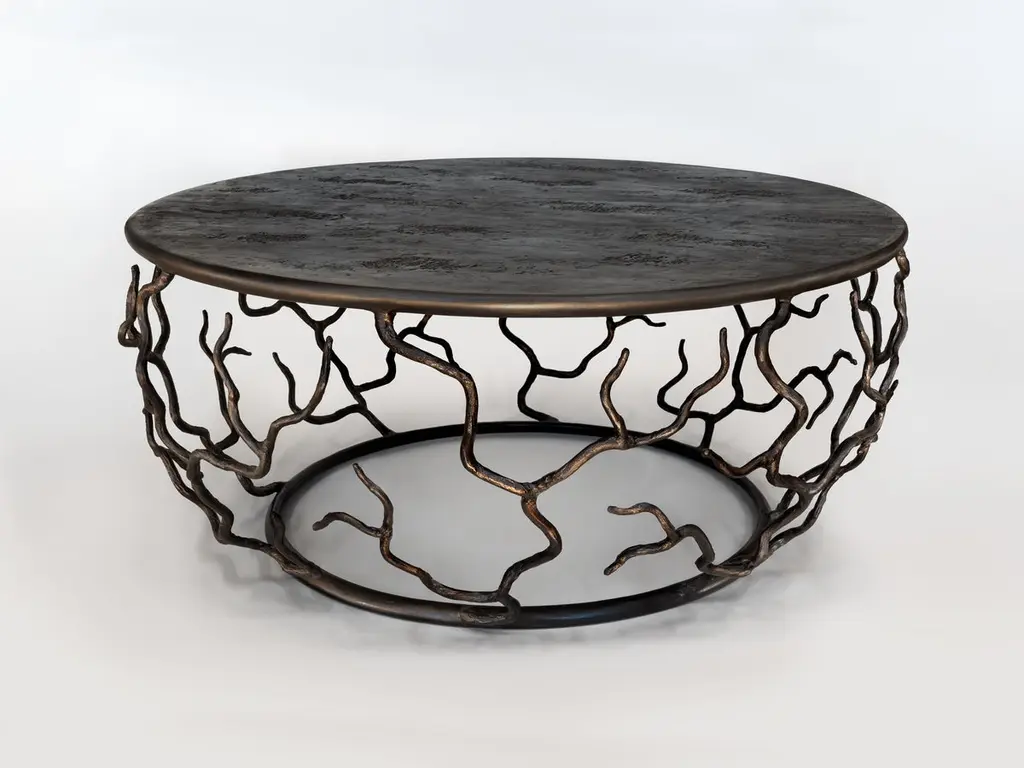 A rare opportunity to acquire designs from past season, one-of-a-kind pieces or unique prototypes. With discount of up to 70%.The Etna coffee table features organic forms and natural motifs. Each piece is individually hammered and hand formed. Skillfully finished in plaster to resemble the texture of tree bark. The top is meticulously hand-sculpted, offering a unique and artistic touch. Details:Material: Metal structure, hand-sculpted with plasterFinishes: Bronze PlasterOrigin: Handmade in Europe, Germany