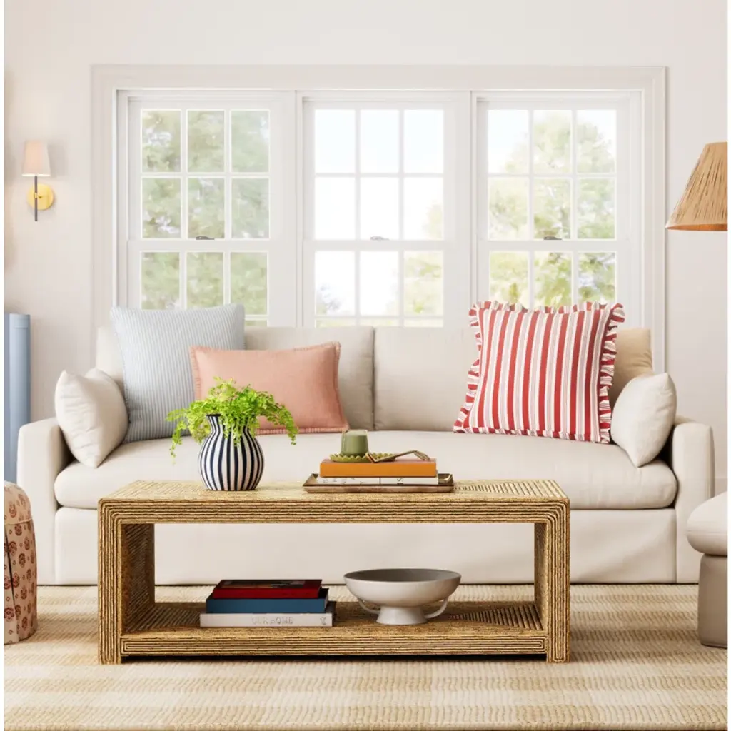 This cocktail table exudes coastal style, bringing a laid-back vibe to your space. It's wrapped in a banana leaf weave that brings so much visual texture to the simple silhouette. What else do we love? It offers lower shelf storage for books, games, and more – and the top surface is roomy enough for a couple placemats when you want to eat as you watch your favorite series.