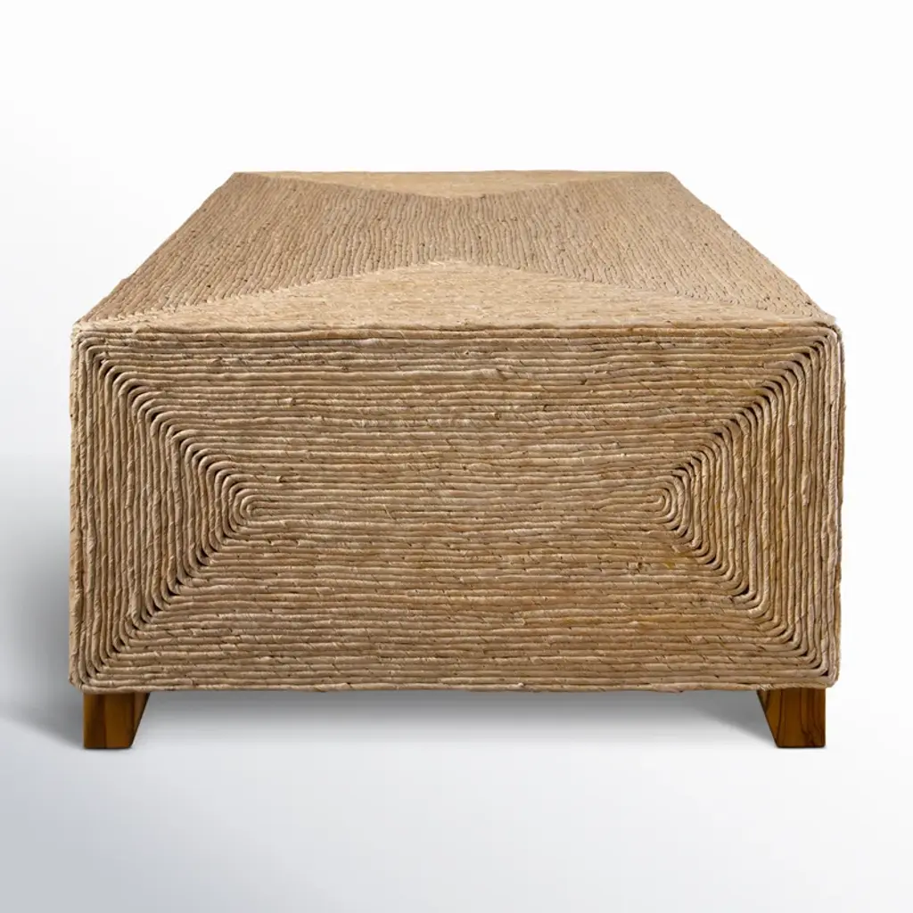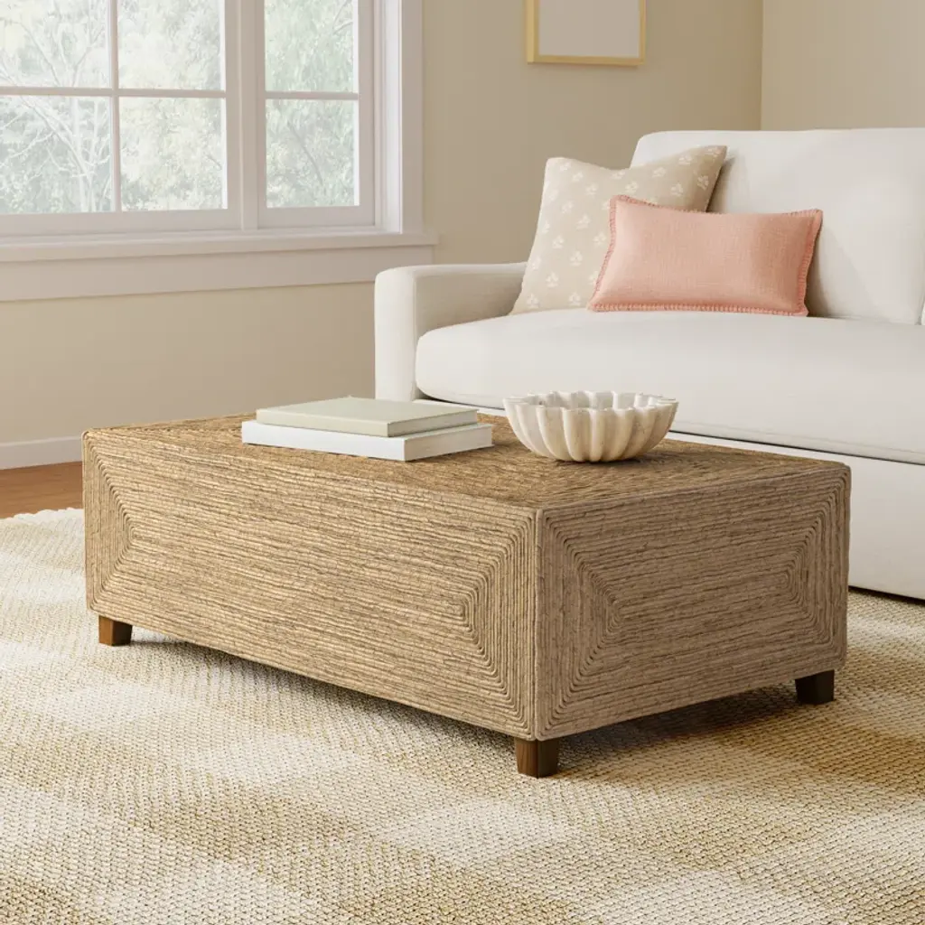 This rectangular coffee table embodies coastal style, bringing a relaxed vibe to your living room or den. It's wrapped in a banana leaf weave that's uniquely textured, and it has natural variations that add visual interest. Plus, the light walnut stain is an easy neutral to match with your existing design scheme. Decorate the top with décor, or leave it open for trays of apps and drinks when you have company.