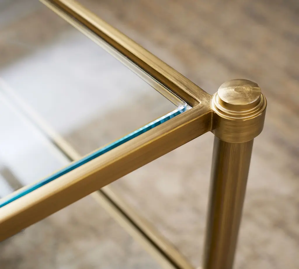 An elevated classic, Everson’s clean lines and clear surfaces keep your space looking open and light. Crafted from steel for long-lasting durability, the frame has beautiful ornamental joint and foot detailing and is fitted with tempered glass.