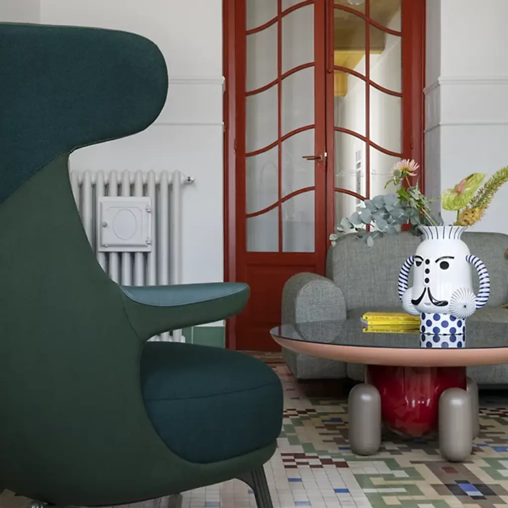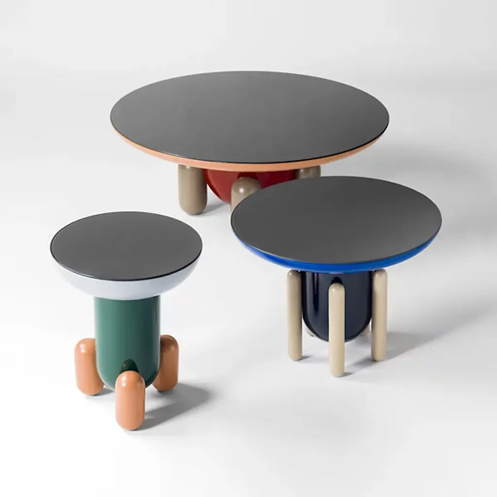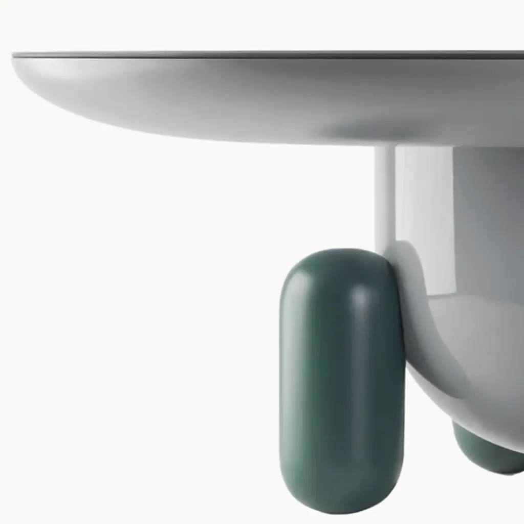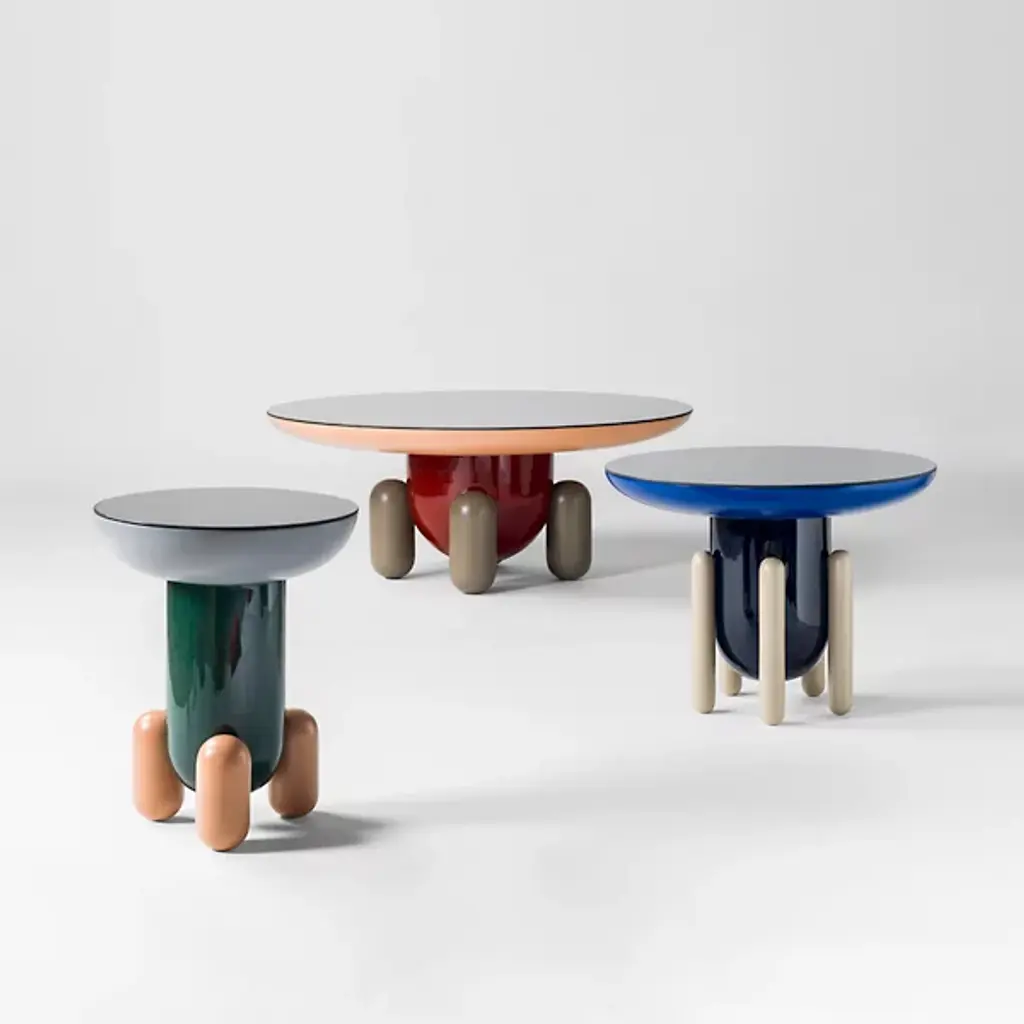 Provide a tasteful appeal to modern interiors with the inspired design of the Explorer Round Coffee Table from BD Barcelona. A clever, clean-surfaced creation from Jaime Hayon, the table family is designed around the childlike joy of Jelly Bean candies, communicating smooth style with retro-modern geometric shapes. A mix of gloss and matte finish to its surfaces, it ascends from solid alder wood legs with rounded ends, setting a fiberglass bowl and body below a clean-surfaced and contrasting glass tabletop.