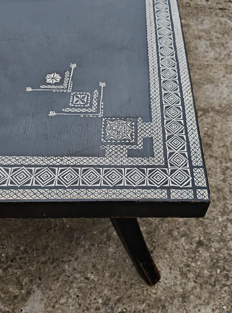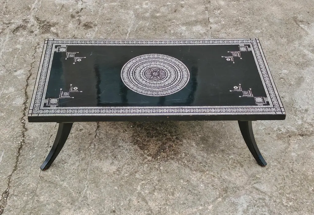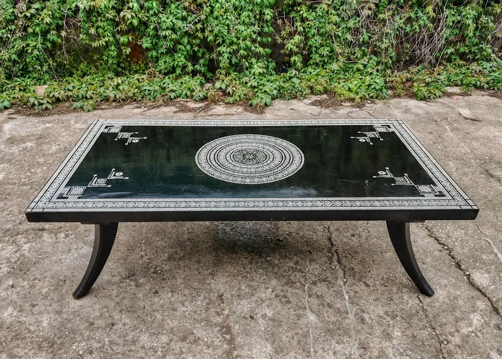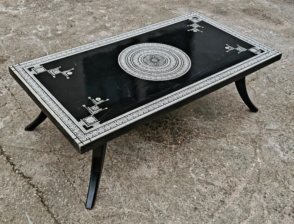 In this listing you will find an extraordinary, large antique coffee table designed by Ettore Zaccari,, an Italian master, in 1905. It is done oof solid oak and finished in black lacquer. Table features hand-carved ornaments done in ivory color. It's size, sculptural shape and overall design make this table a real showstopper easy to combine with any style of interior design.Very good condition with small signs of time and use.When purchased the table will be carefully wrapped up and packed in a way to avoid any damages in transport. As soon as shipped you will receive the tracking number for your package. If you have any additional questions regarding this piece please feel free to contact me.Happy shopping!