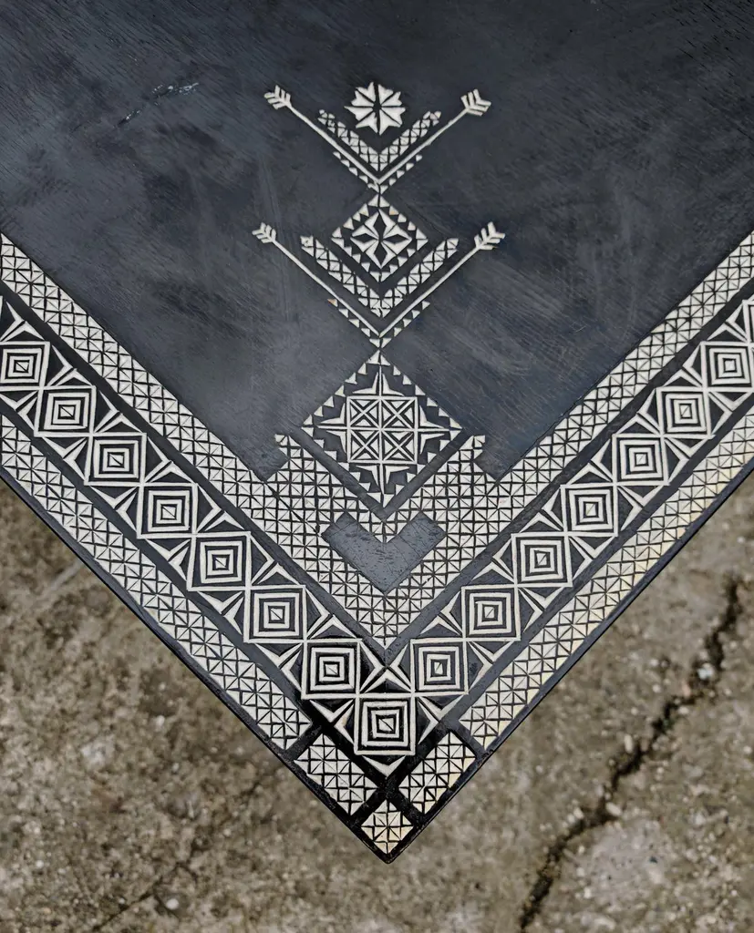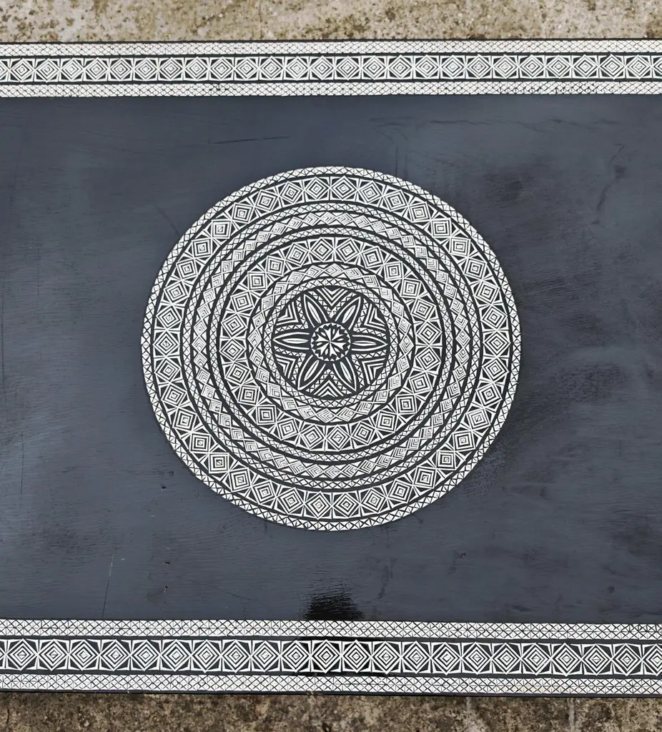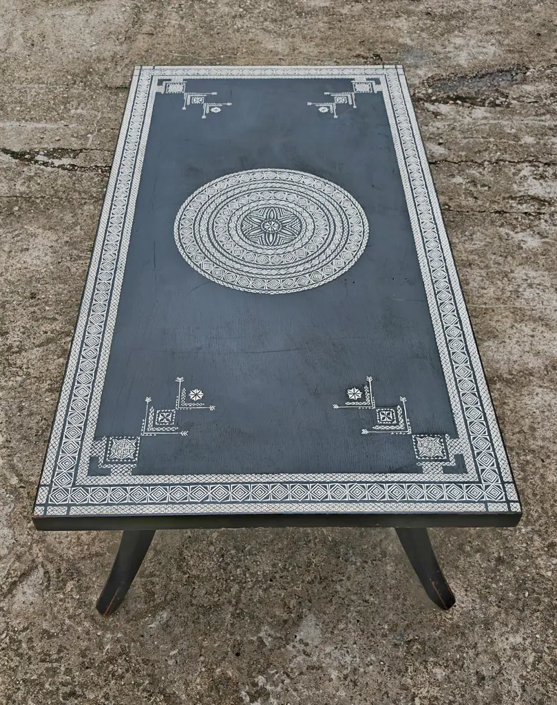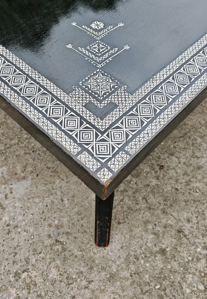 In this listing you will find an extraordinary, large antique coffee table designed by Ettore Zaccari,, an Italian master, in 1905. It is done oof solid oak and finished in black lacquer. Table features hand-carved ornaments done in ivory color. It's size, sculptural shape and overall design make this table a real showstopper easy to combine with any style of interior design.Very good condition with small signs of time and use.When purchased the table will be carefully wrapped up and packed in a way to avoid any damages in transport. As soon as shipped you will receive the tracking number for your package. If you have any additional questions regarding this piece please feel free to contact me.Happy shopping!