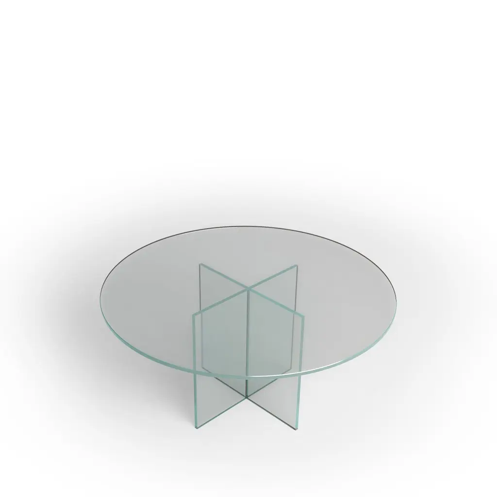 The coffee table Aka is made entirely of extra white glass. The top is circular and 60cm in diameter, while the base is obtained by gluing slightly bevelled 8mm thick slabs.Coffee table made by grey smoked glass which combines easily with other trendy materials such as velvet, wood or ribbed fabric. Luxurious, refined and incredibly glam, this type of glass creates an exclusive atmosphere that is difficult to resist. Thanks to their opacity, they filter the light and illuminate the environment in a soft way. To create an intimate and welcoming atmosphere they are simply perfect.Dimension and glass type can be customizable. 100% Made in Italy.