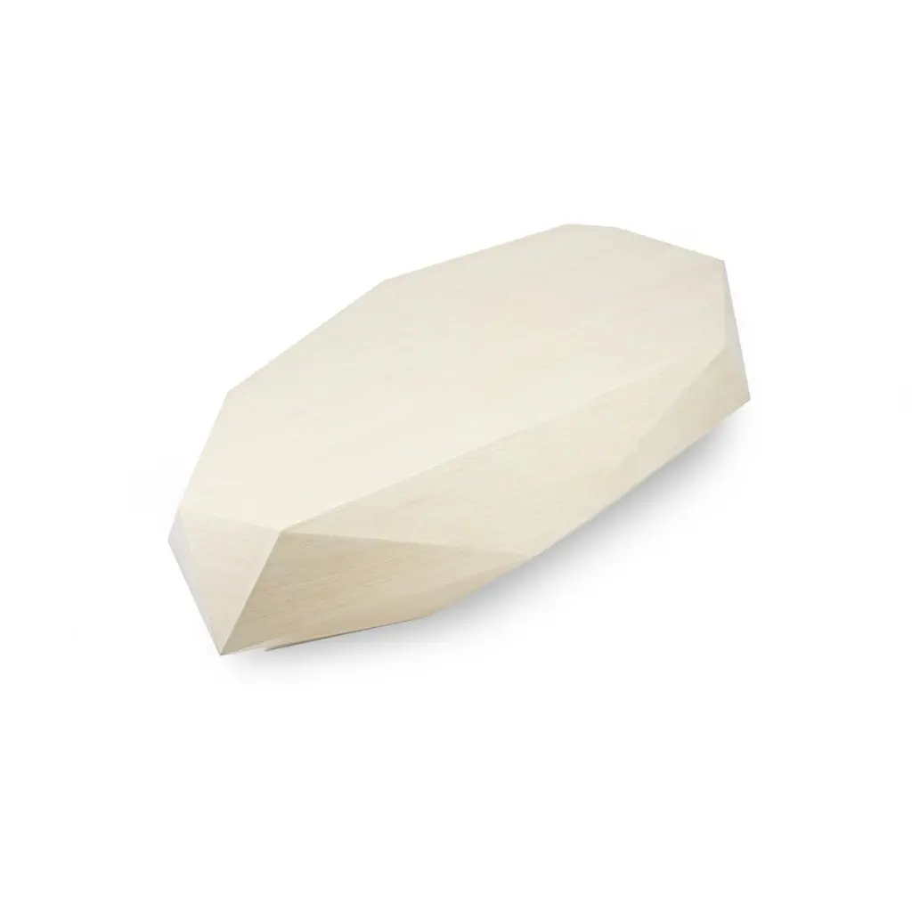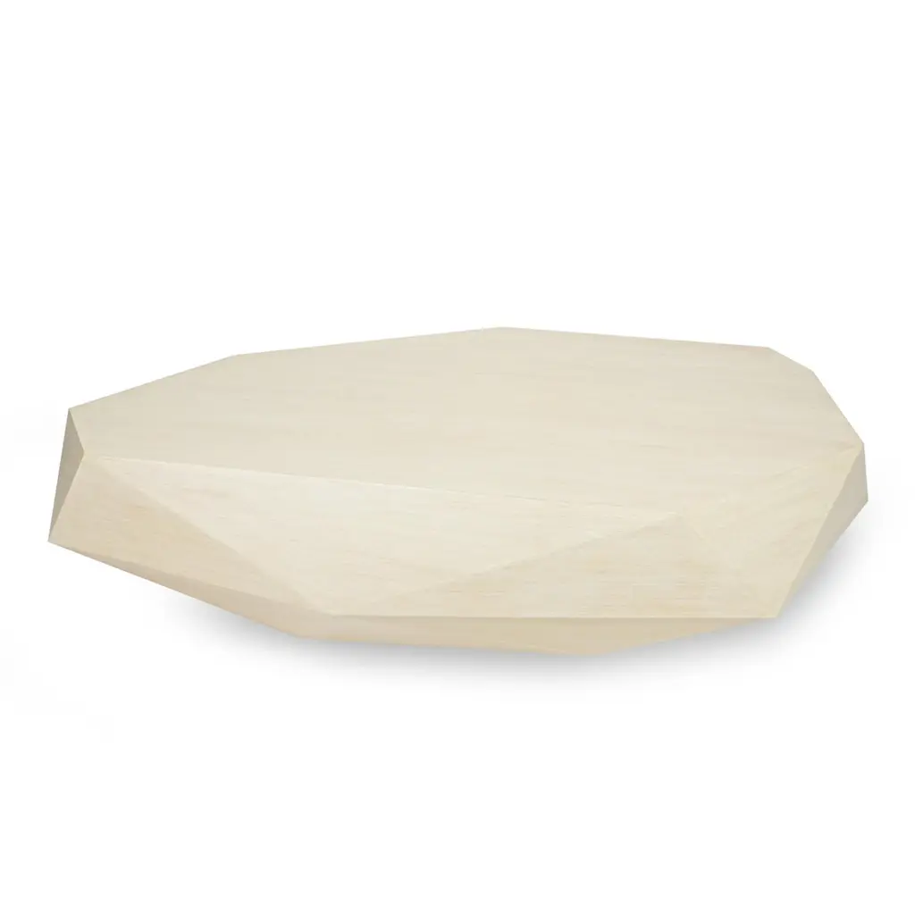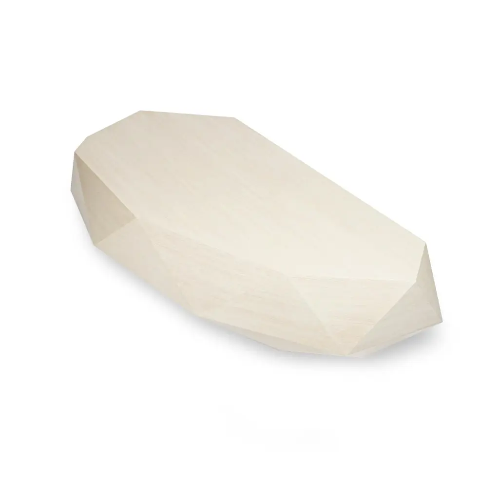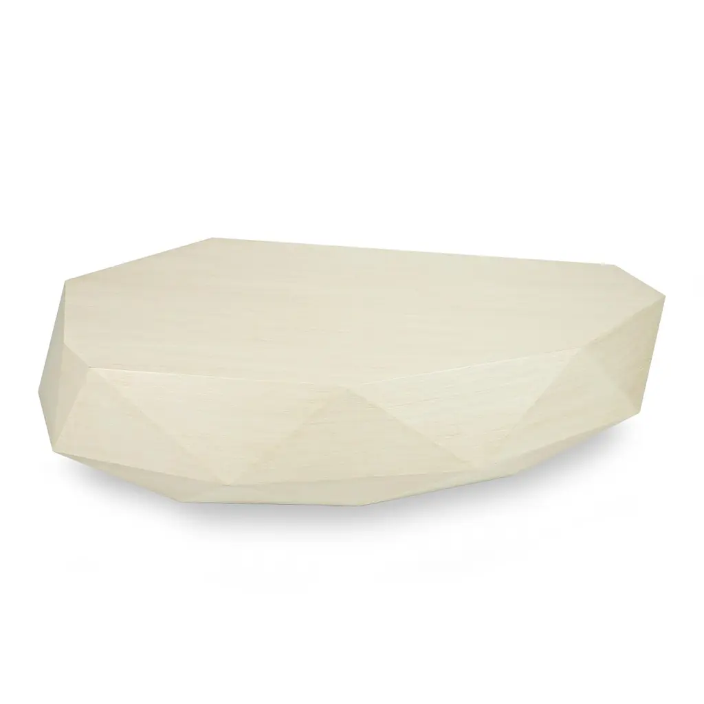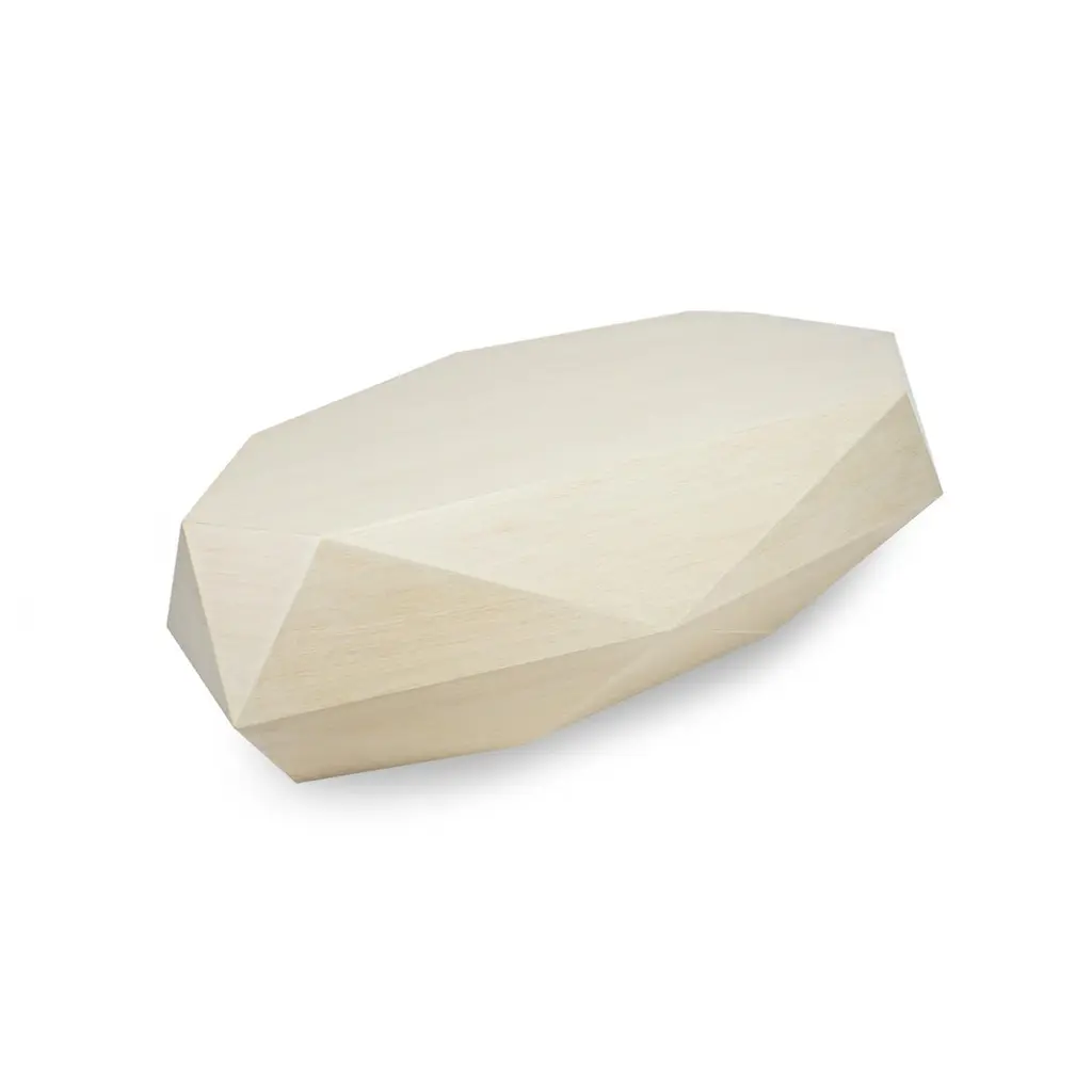 Faceted white oak veneer coffee table. Facets may not be identical from table to table. Handmade in Norwalk CT. Overall size and shape/orientation customizable.Measurements:Outside: 55”W x 24”D x 17”HPrice As Shown: $5,120 eachCustomization may change price.How We Work:Made to order by Connecticut-based furniture design and manufacturing company The Tailored Home. Submit your customization desires by 1stdibs messenger for a quote. After orders are placed our workshop manager creates a visual work order for your approval for quality assurance.Customization Options:Dimensions can be customized. Ask for details.The fabric shown may come in more colors. We also carry thousands of other materials and can send you samples and fabric pricing upon request. We accept your fabric for a COM fee of 5% of the cost of the piece. Welting, piping, tape or trim can be added. Different species available for pieces with exposed wood and can be painted & lacquered in any Benjamin Moore color (for additional charge) or stained in one of our stain options. Custom color matches cost $75 per sample.We accept inspiration photos of pieces you like.2021 - Made to OrderThis piece can be made as is or custom made with customer’s choice of materials and size adjustments.9-10 weeks.