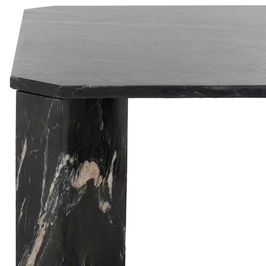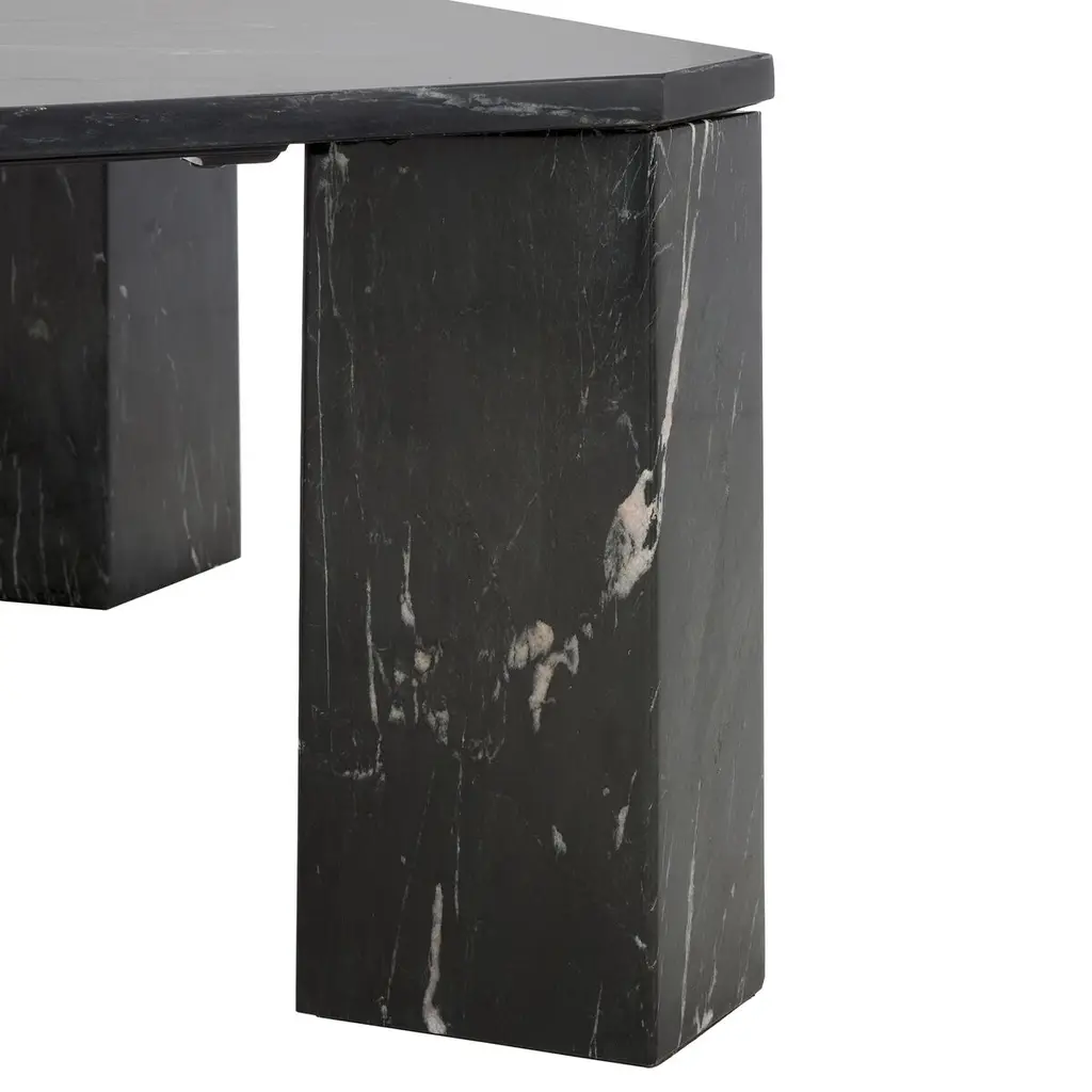 Anchor your living space with the polished and sophisticated touch of our Faelan coffee table. The stunning table combines the organic beauty of natural stone with a clean and streamlined design. The angular corners of its square tabletop are beautifully accentuated with chunky legs. Its bold, architectural profile explicitly celebrates the organic allure and texture of marble. Chic and sophisticated, our coffee table serves as the perfect centerpiece for a luxe home office or refined lounge.