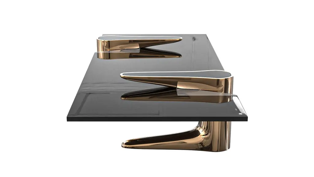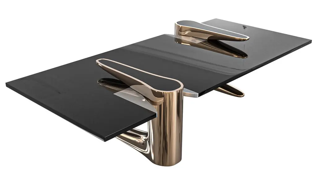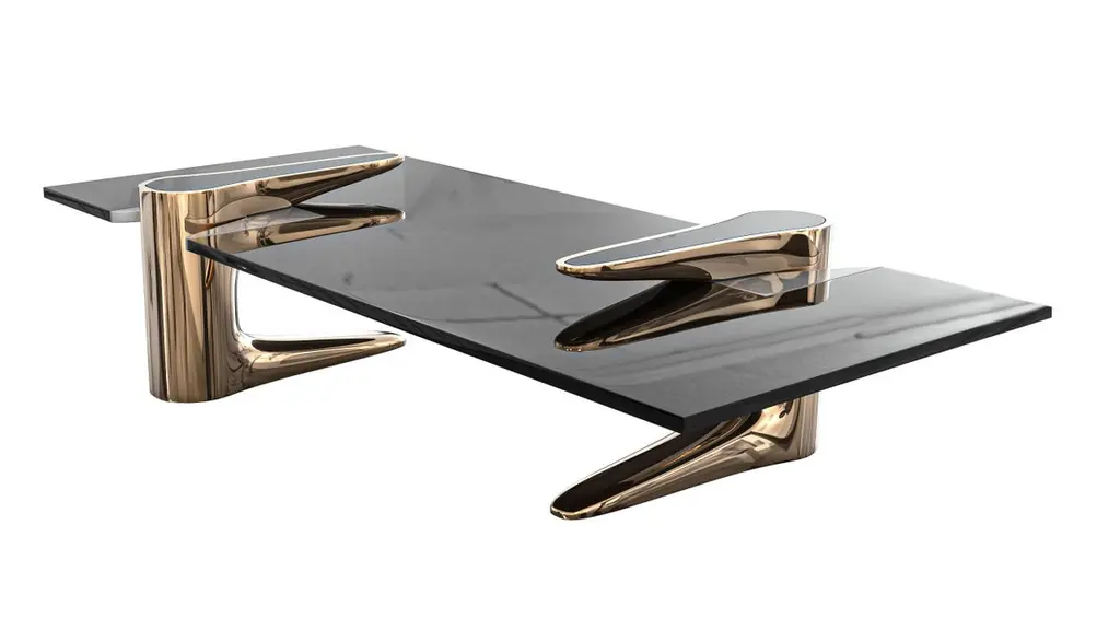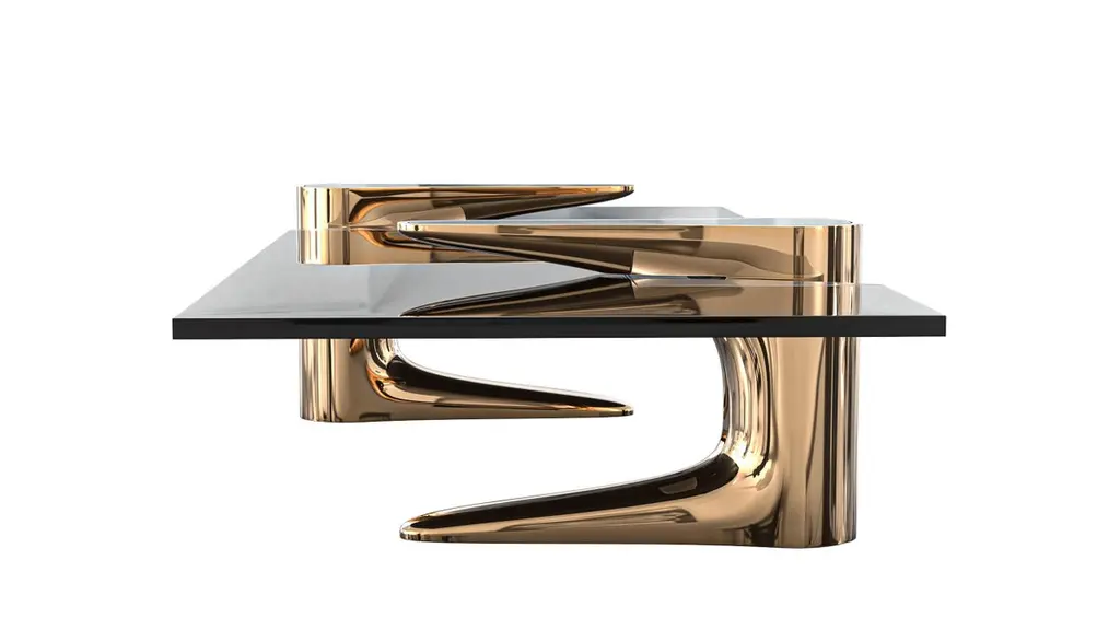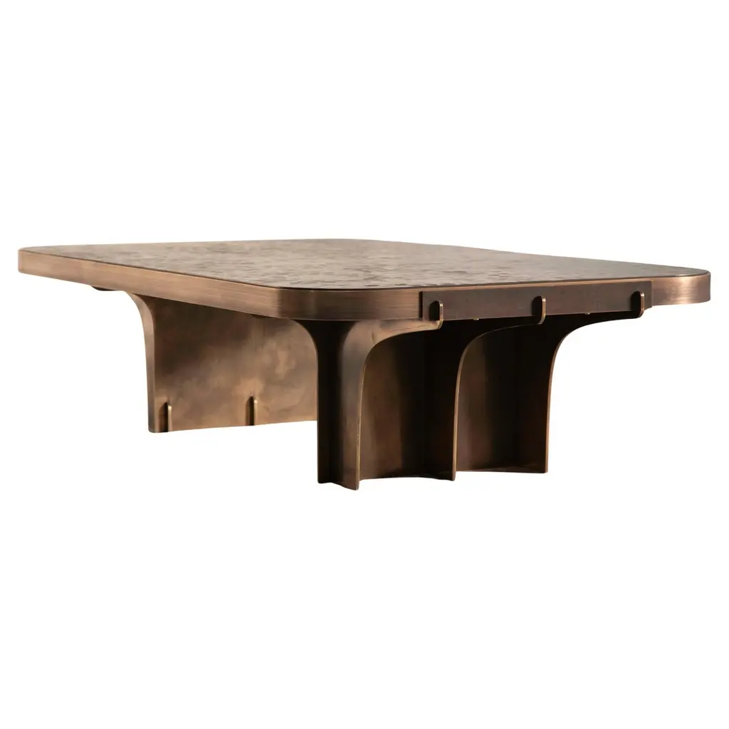 "Falce" Coffee Table With Bronze And Stainless Steel, Hand Crafted, Istanbul