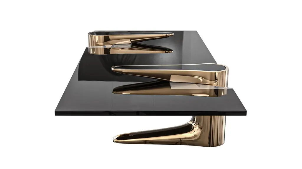 "Falce" Coffee Table with Bronze and Stainless Steel, Hand Crafted, Istanbul.Designed by Hasan Samet Bizimyer.Design, Art, Innovation.Bizimyer Furniture Presents.Bizimyer Art / Design.The world needs icons. Those exceptional few that stand clear of the rest. For these individuals who inspire greatness, only the purest expression of Bizimyer Furniture will do. An icon like no other.Unparalleled elegance, beauty and presence.The purest of retreats. The most luxurious touches abound.The world’s finest A grade hides. Hand-crafted wood veneers. Distinguished people is cocooned by the finest materials and impeccable workmanship. This is a truly unique space, defined by unparalleled comfort.Refined design heritage. This work of art will add value to your life with the precious handwork of Istanbul's best masters."Bizimyer Furniture" is a "Bizimyer Art / Design" company. The design company was founded in 2006 by Hasan Samet Bizimyer.Hasan Samet Bizimyer focused on innovative designs and brought them to life.Now, via 1stDibs, for dear art lovers, it offers carefully crafted timeless and exclusive design furniture.Design and Production by Hasan Samet Bizimyer.
