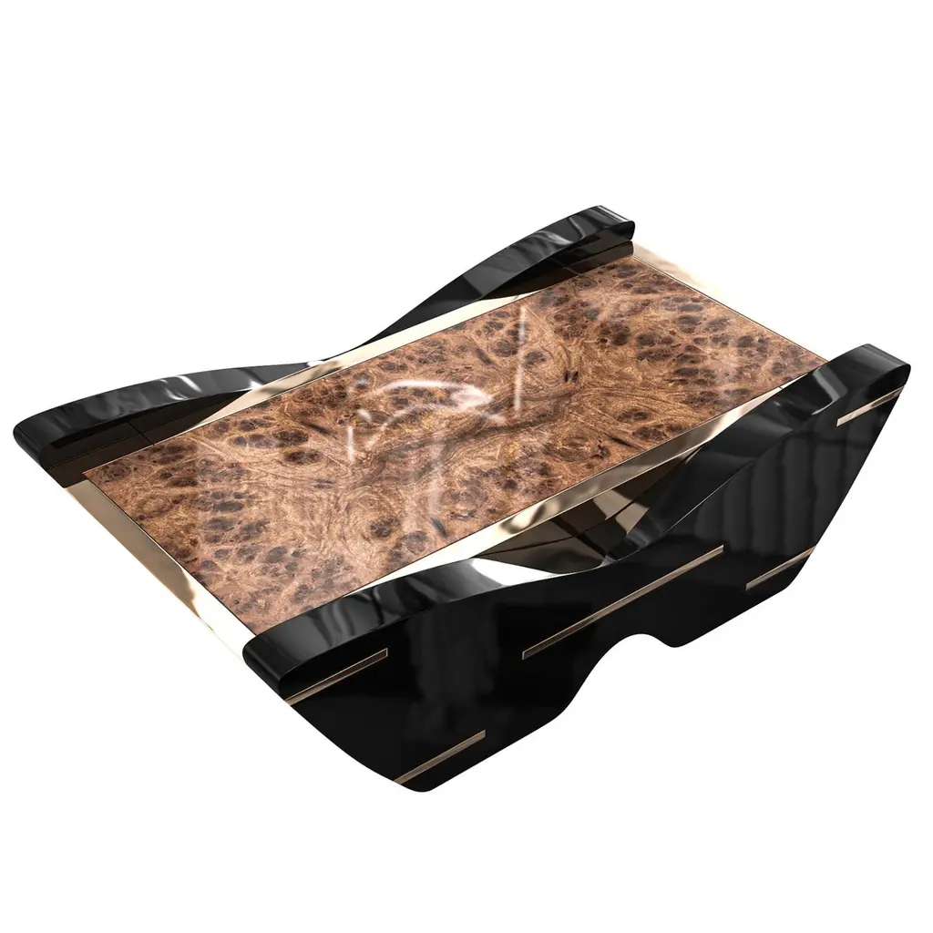 "Falconara" coffee table, stainless steel and burl walnut with bronze details, Istanbul.Designed by Hasan Samet Bizimyer.Design, Art, Innovation.Bizimyer Furniture Presents.Bizimyer Art / Design.The world needs icons. Those exceptional few that stand clear of the rest. For these individuals who inspire greatness, only the purest expression of Bizimyer Furniture will do. An icon like no other.Unparalleled elegance, beauty and presence.The purest of retreats. The most luxurious touches abound.The world’s finest A grade hides. Hand-crafted wood veneers. Distinguished people is cocooned by the finest materials and impeccable workmanship. This is a truly unique space, defined by unparalleled comfort.Refined design heritage. This work of art will add value to your life with the precious handwork of Istanbul's best masters."Bizimyer Furniture" is a "Bizimyer Art / Design" company. The design company was founded in 2006 by Hasan Samet Bizimyer.Hasan Samet Bizimyer focused on innovative designs and brought them to life.Now, via 1stDibs, for dear art lovers, it offers carefully crafted timeless and exclusive design furniture.Design and Production by Hasan Samet Bizimyer.