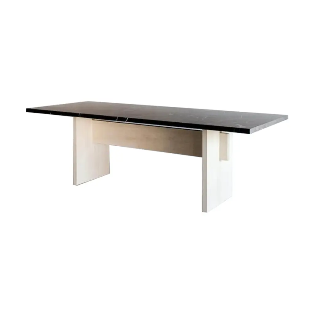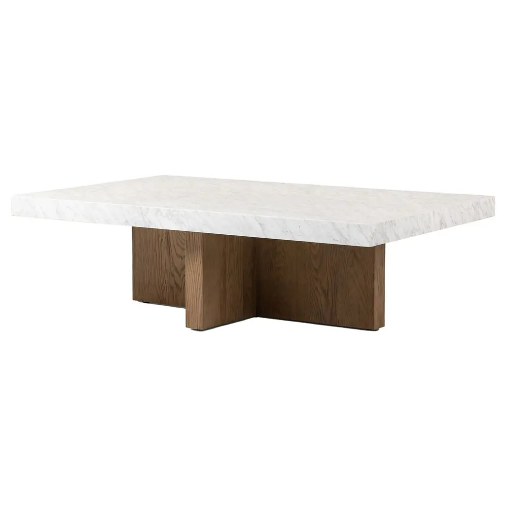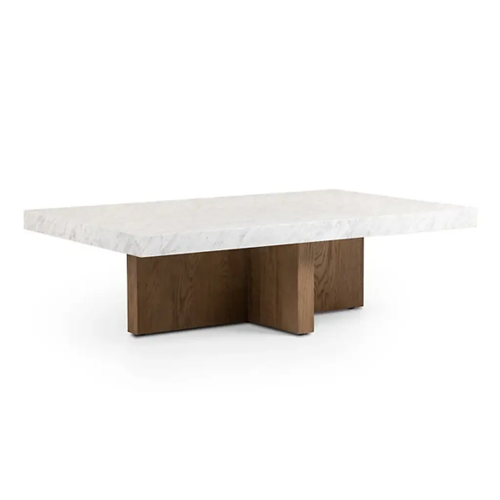 A beautiful, minimal coffee table inspired by Bauhaus architecture and art. This piece features a honed Carrara marble top on a solid maple wood base finished in lacquer. Customizable marble and lacquer finishes are available. Customizable sizing available.