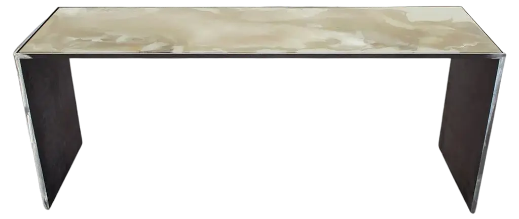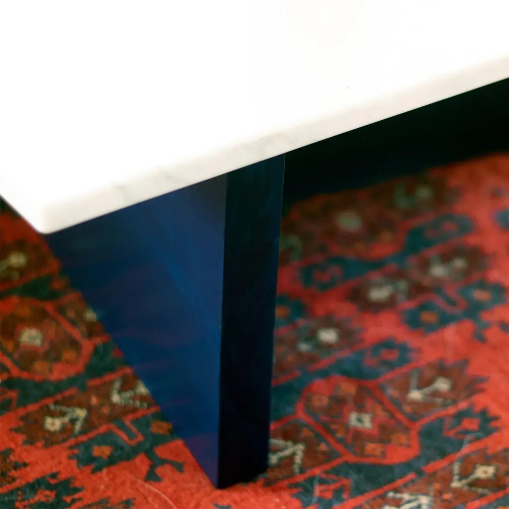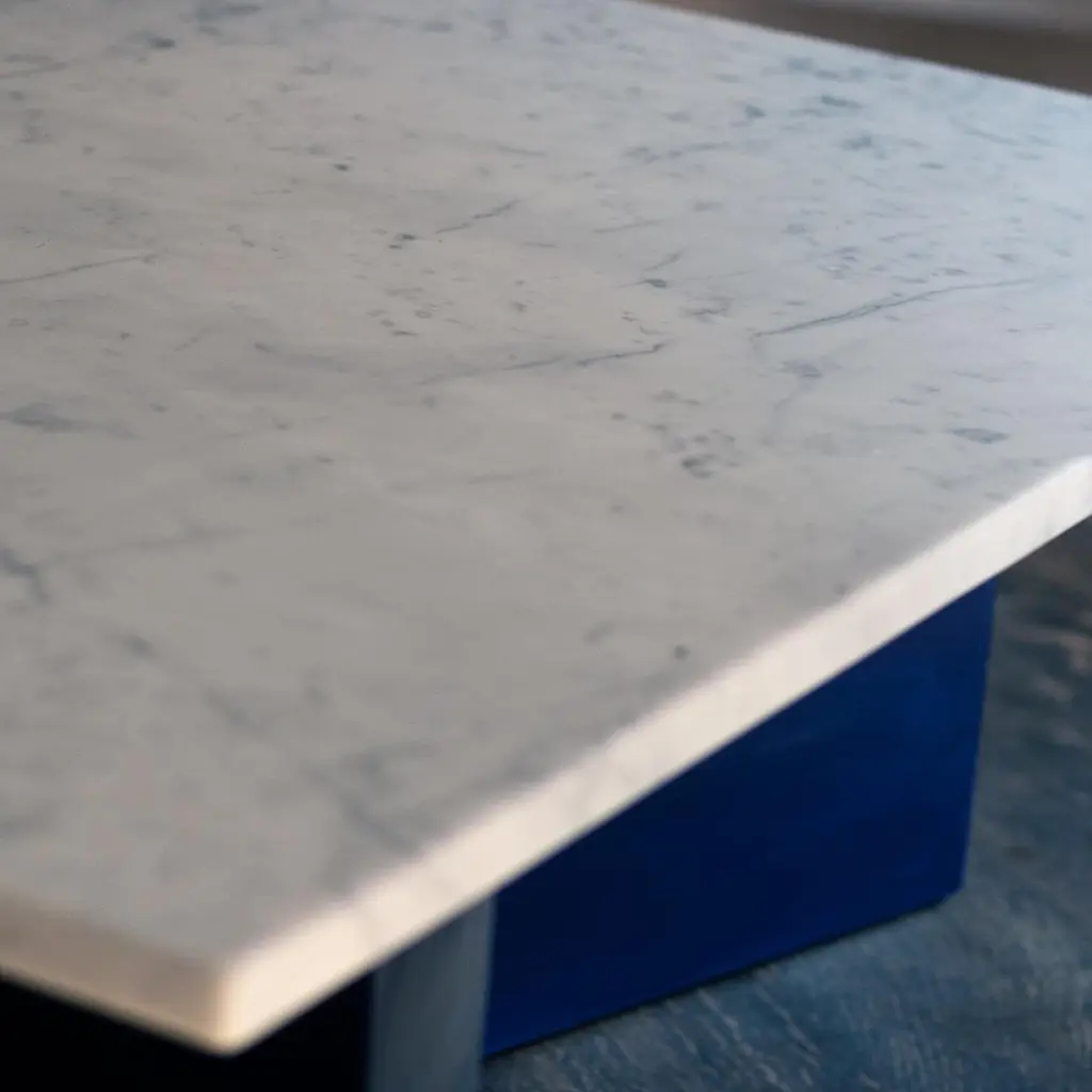 Fallada White Carrara Marble And Blue Ink Lacquered Based Coffee Table