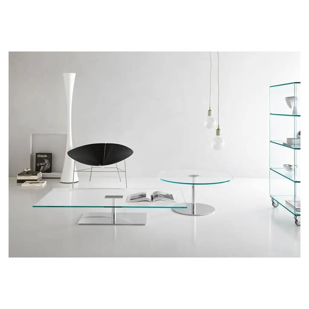 Tempered glass coffee table with chromed metal base.Flashes of light and three-dimensional effects, thanks to the mirrored chrome finish of the base and support.Giovanni Tommaso GarattoniMade in Italy:Made in Italy furniture means design, quality, style and sophistication.The typical elegance of Italian design can be found in this piece. No wonder that the world famous designers like Philippe Starck, Karim Rashid, Piero Lissoni, Rodolfo Dordoni and many others put their signature next to Made in Italy.