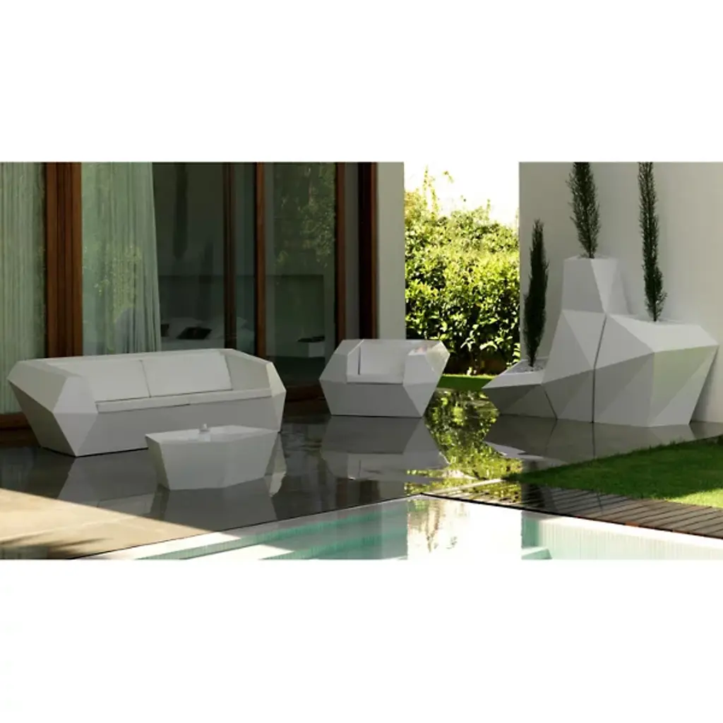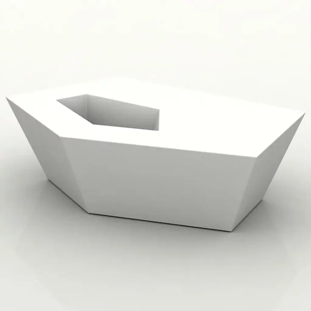 A gorgeously geometric centerpiece for your Faz lounging set, indoors and out. The Vondom Faz Coffee Table is a solid piece, with a fractal form made with rotation molded white polypropylene in a smooth-to-the-touch matte finish. A cavity in the table acts as a small planter or as an instant ice bucket. Designed by Ramon Esteve.