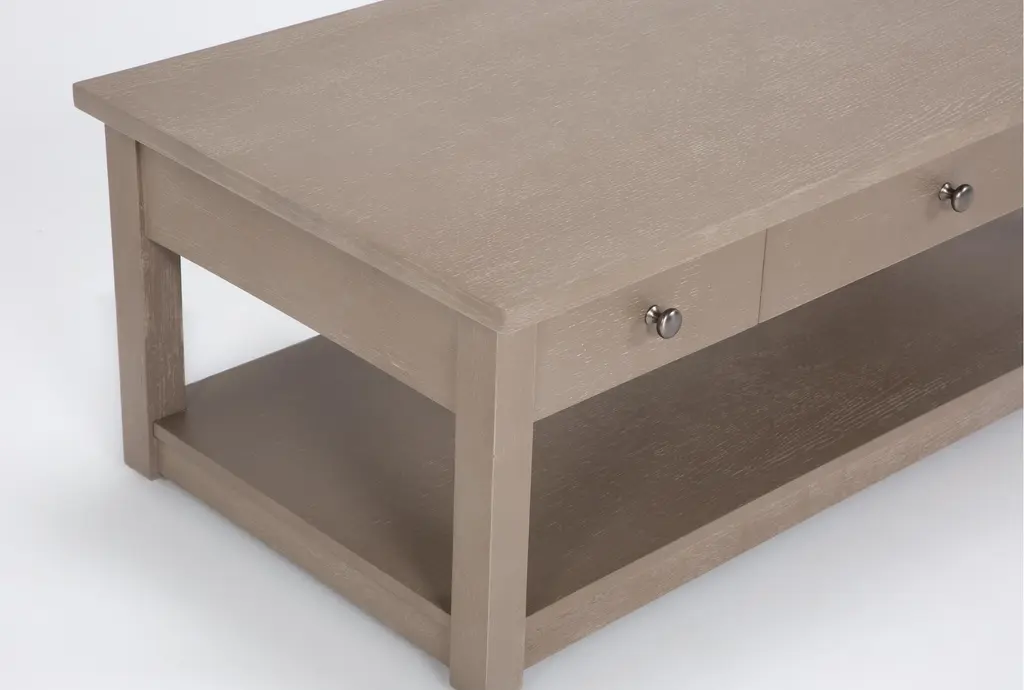 Designed with a sense of ease and simplicity, our Felipe coffee table set is a seamless addition to your space. Solid rubberwood and oak veneers make for a handsome and sturdy combination, which is enriched by the warm finish, understated hardware and clean lines. You'll love the casual charm and welcome function each piece brings. Featuring dovetail joinery and side-mount full extension ball-bearing glides, the drawers promise smooth operation. The lift-top coffee table rises to any occasion and even includes caster wheels for convenient mobility.