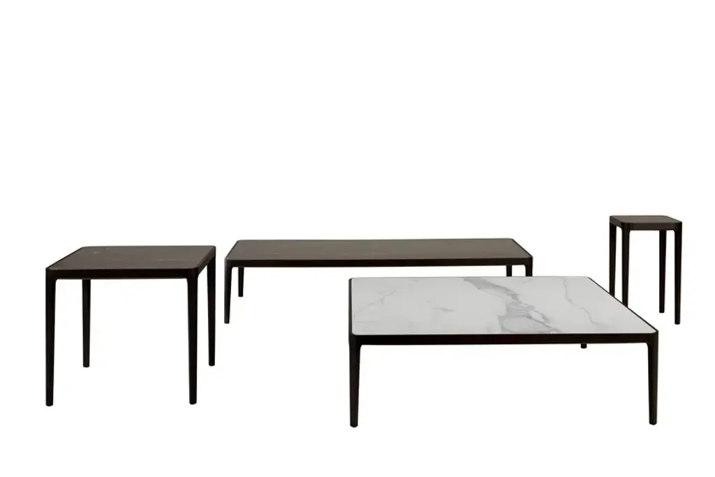 Fidelio coffee-tables, with wooden base and porcelain stoneware top, capture for the solid wood sculptural fullness and magnificence. They are available in four different sizes and finishes.Finishes:Porcelain stoneware top: onyx grey porcelain stoneware, statuario altissimo porcelain stoneware, Portoro porcelain stoneware, onyx amber porcelain stoneware, Emperador porcelain stoneware.Wooden structure: Canaletto walnut, dark oak head-treated, black ash.