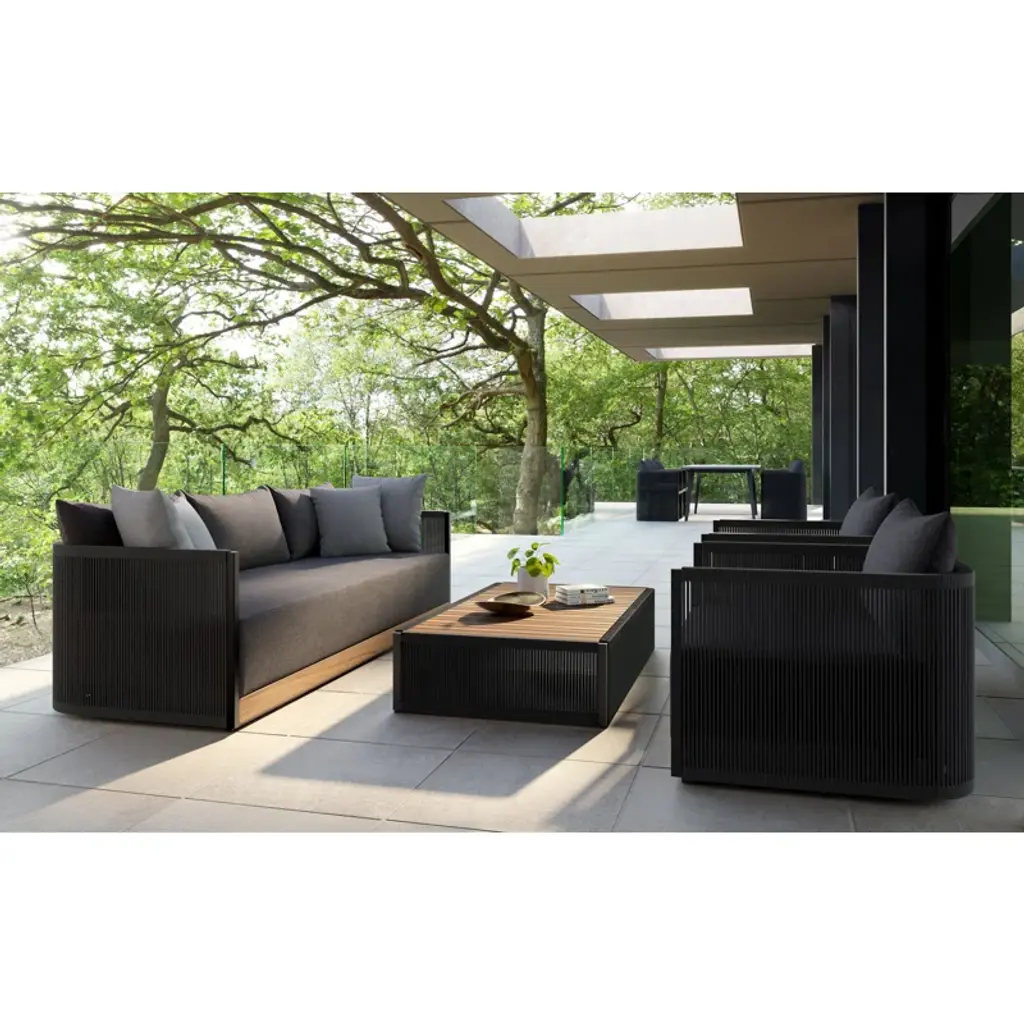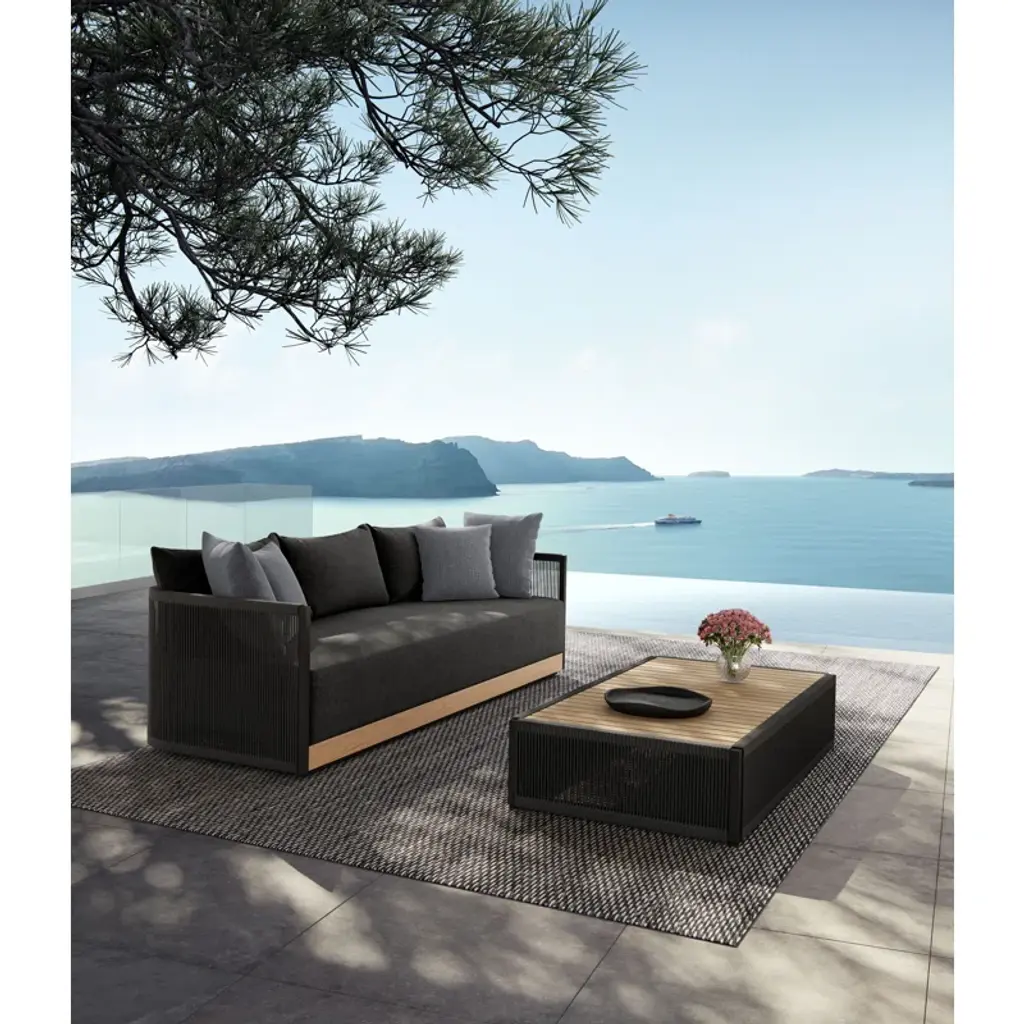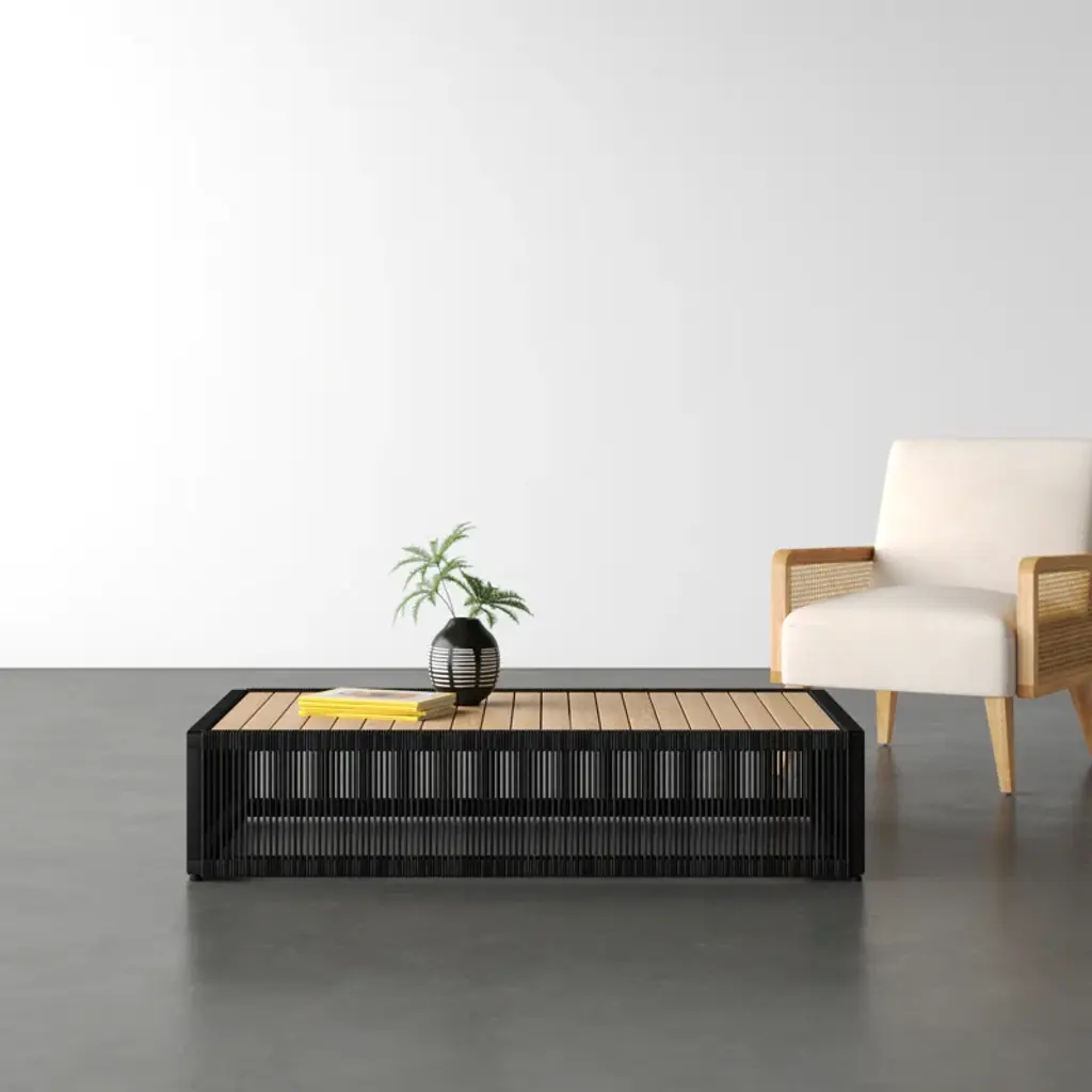 A modern silhouette made for entertaining, our occasional tables bring a touch of class to your outdoor space. With its sleek balance of powder-coated steel, textured regatta cord, and warm natural teak panels, the table exudes the perfect contemporary outdoor aesthetic. Offered in coffee table size, the simple slatted design facilitates easy draining. The result is the perfect blend of form and function.