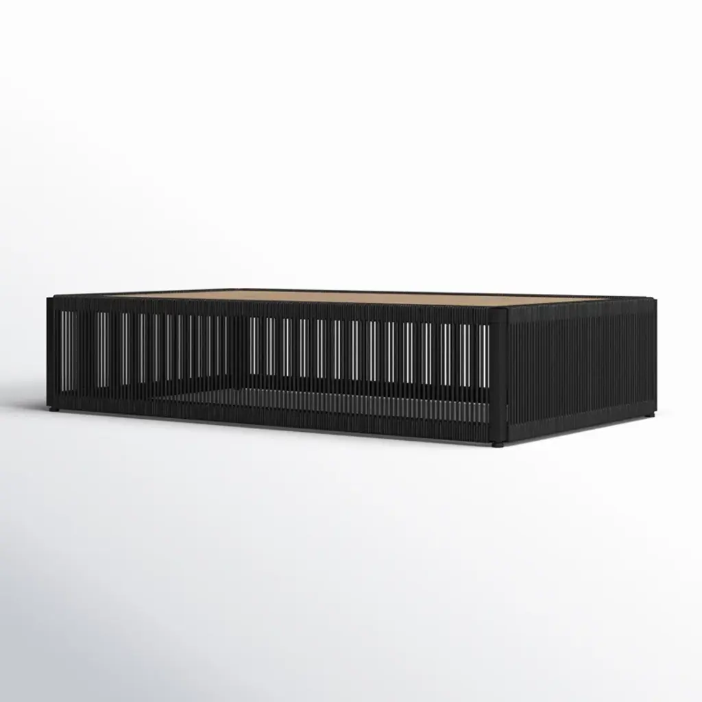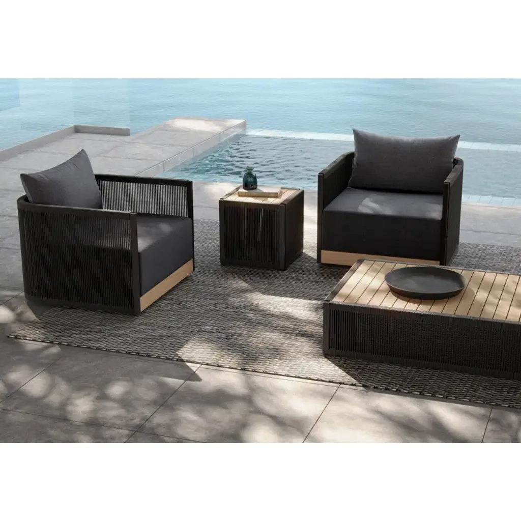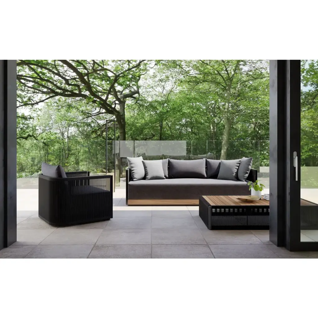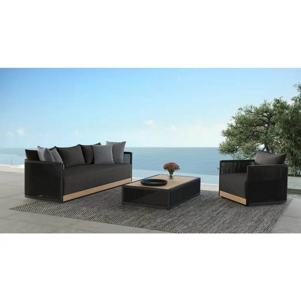 A modern silhouette made for entertaining, our occasional tables bring a touch of class to your outdoor space. With its sleek balance of powder-coated steel, textured regatta cord, and warm natural teak panels, the table exudes the perfect contemporary outdoor aesthetic. Offered in coffee table size, the simple slatted design facilitates easy draining. The result is the perfect blend of form and function.