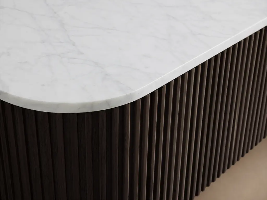 Our Finnley Collection showcases a stunning mixed-material design, inviting elevated style into your home. Hand-finished pine from Finland or oak wood is luxuriously complemented by stone tops, accented by brass plinth bases and reeded oak detailing. The result is an eclectic-yet-chic collection that adds a touch of nature’s alchemy to any living space.
