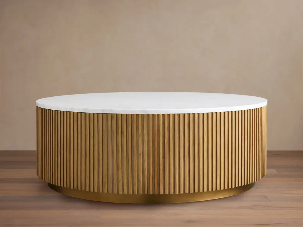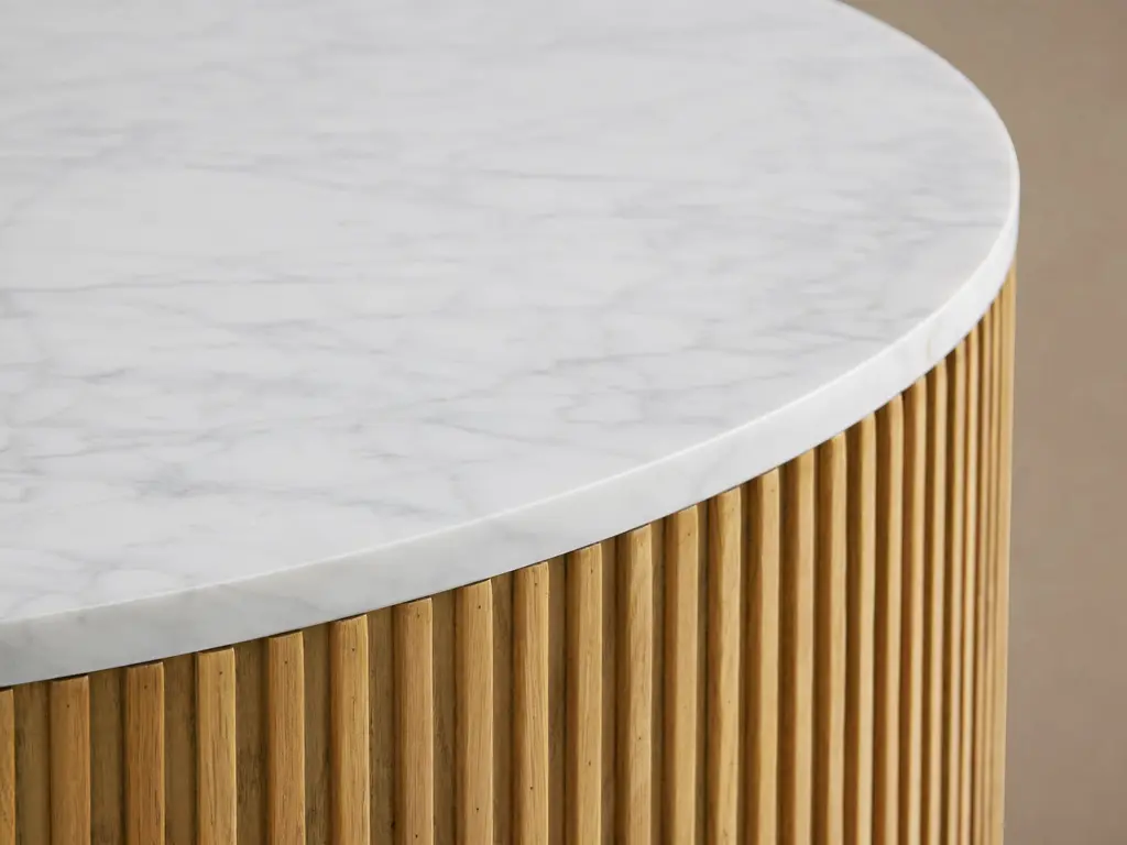 Our Finnley Collection showcases a stunning mixed-material design, inviting elevated style into any room in your home. Hand-finished pine from Finland is luxuriously complemented by stone tops, accented by light brass plinth bases and reeded oak detailing. The result is an eclectic-yet-chic collection that easily fits into any aesthetic.