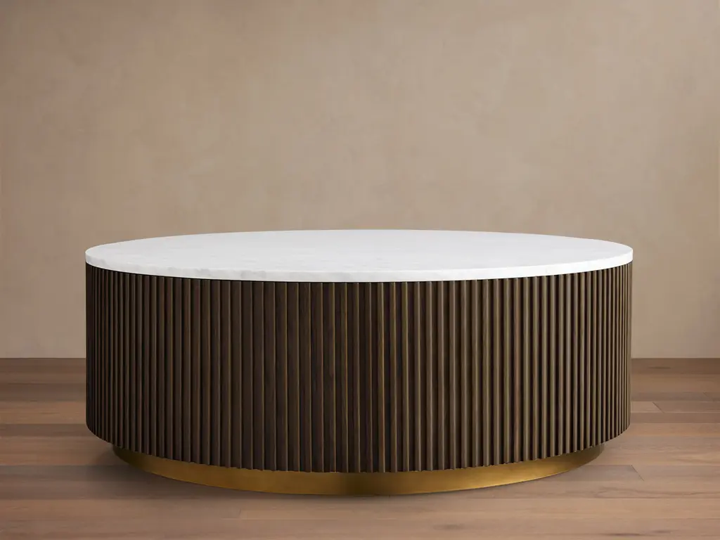Our Finnley Collection showcases a stunning mixed-material design, inviting elevated style into any room in your home. Hand-finished pine from Finland is luxuriously complemented by stone tops, accented by light brass plinth bases and reeded oak detailing. The result is an eclectic-yet-chic collection that easily fits into any aesthetic.