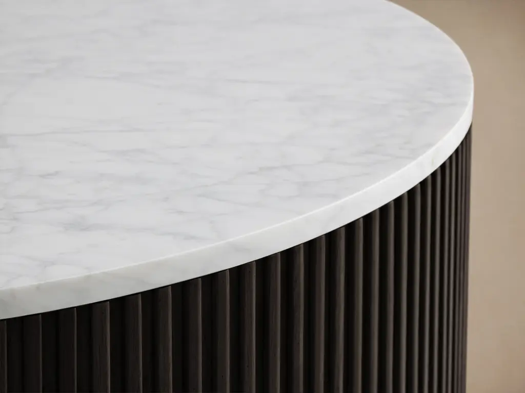 Our Finnley Collection showcases a stunning mixed-material design, inviting elevated style into any room in your home. Hand-finished pine from Finland is luxuriously complemented by stone tops, accented by light brass plinth bases and reeded oak detailing. The result is an eclectic-yet-chic collection that easily fits into any aesthetic.