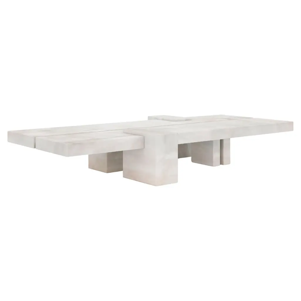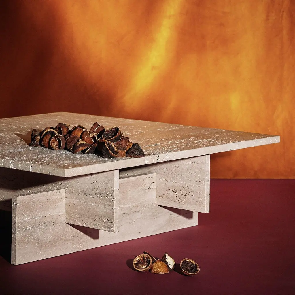 The Fit Table is a minimalist style coffee table made of treated Travertine marble. This coffee table is composed by five marble pieces, all of them assembled in a logical and harmonious way.Josep Vila Capdevila, head designer of Aparentment, was inspired by the mediterranean ancient cultures, civilizations and landscapes recalling "Cold Mediterranean", which is the essence of Aparentment.
