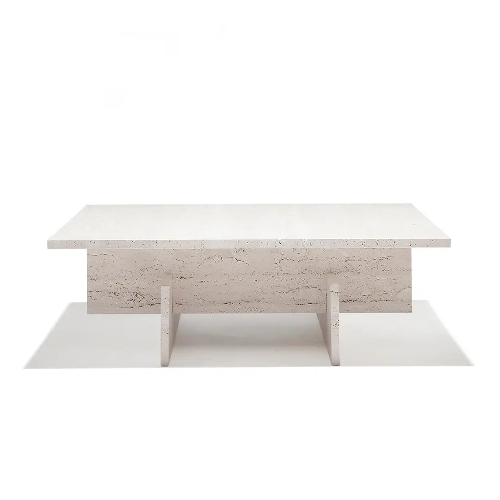 “Fit Table” Travertine Marble Minimalist Coffee Table By Aparentment