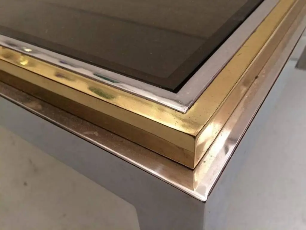 Chrome, brass and smoked glass "Flaminia" coffee or end tables by Willy Rizzo, Italy, circa 1970s.3 available